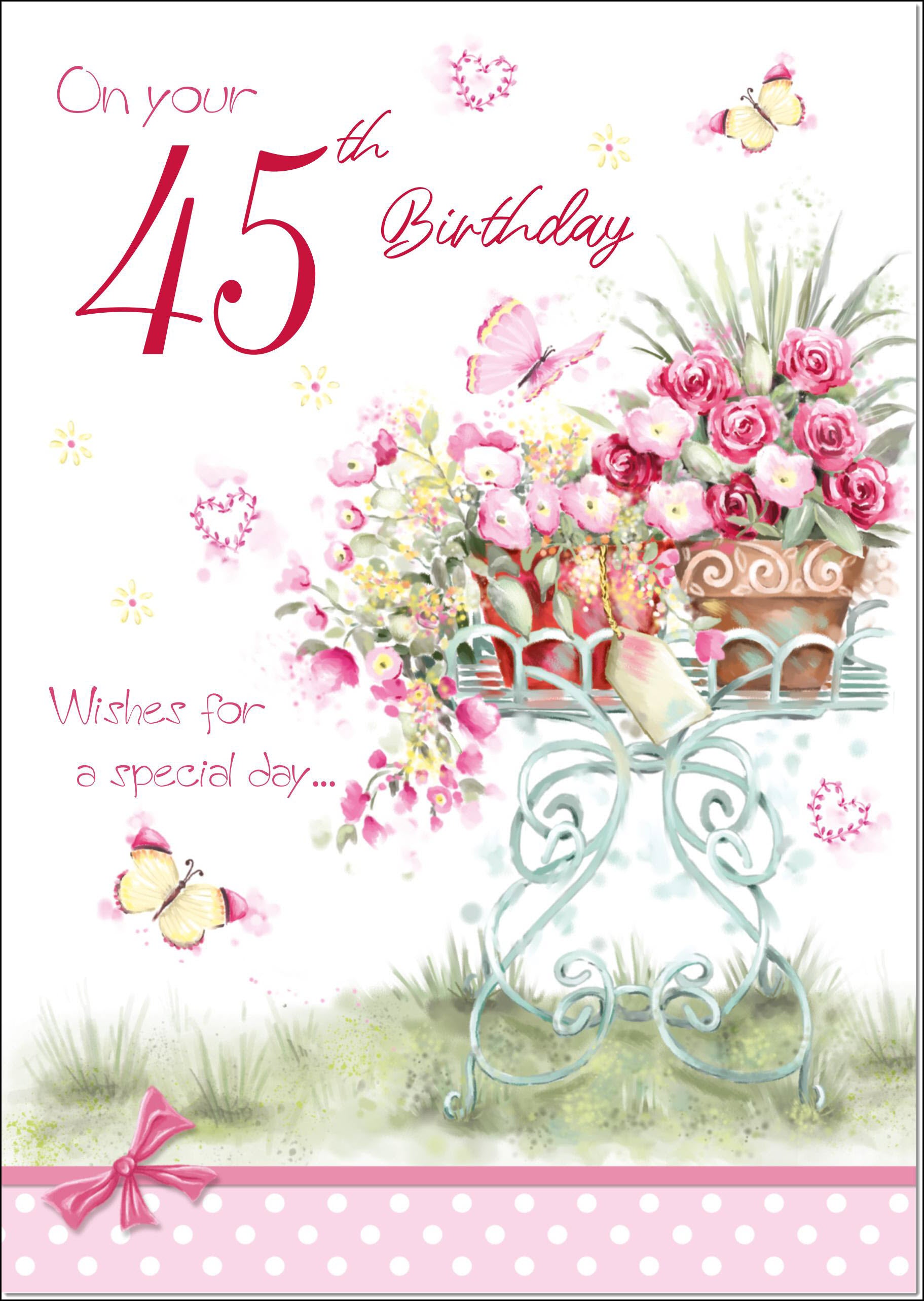 45th Birthday Card Age 45 for Her Pink Floral Plant Pots
