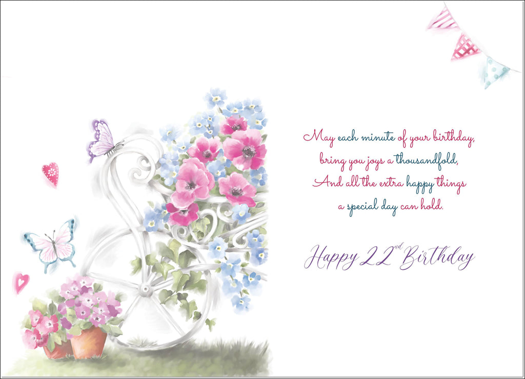 22nd Birthday Card Age 22 for Her Garden Wheelbarrow Bouquet