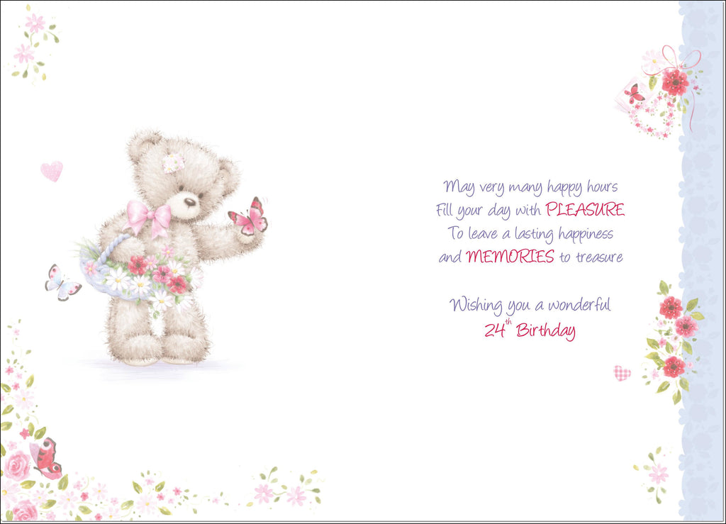 24th Birthday Card Age 24 for Her Cute Teddy's Flowers and Butterflies