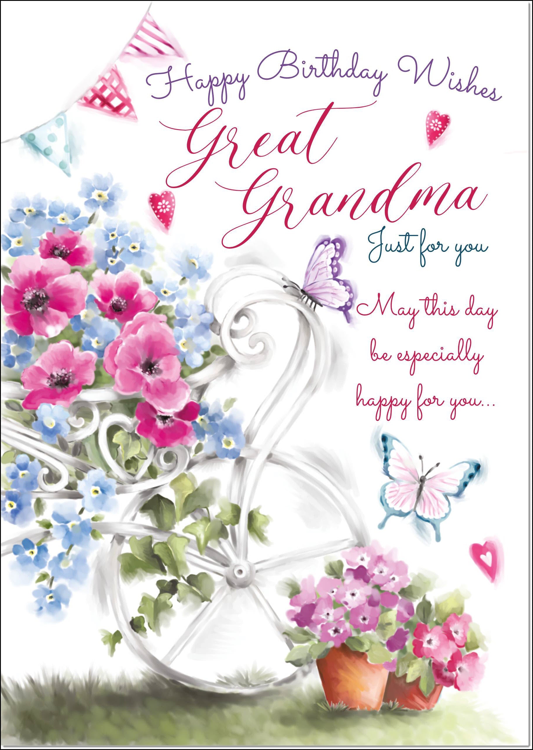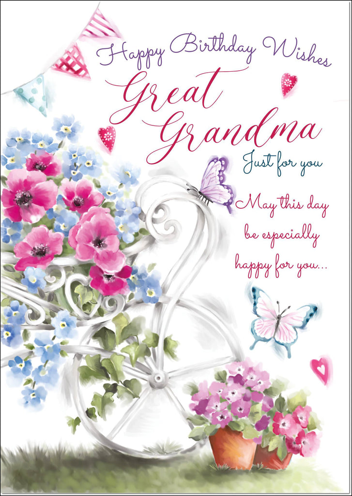 Great Grandma Birthday Card Garden Wheelbarrow Bouquet