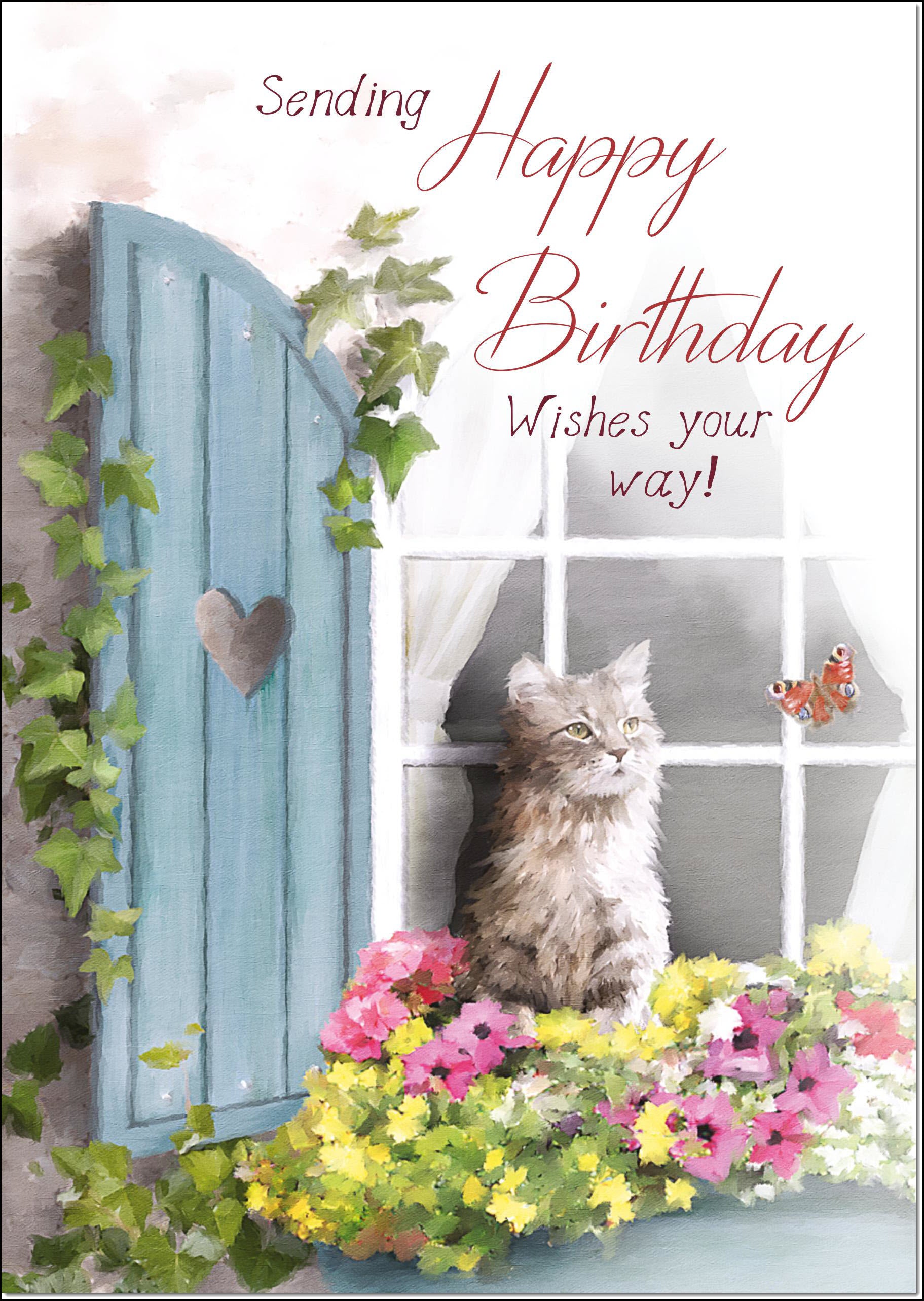 Birthday Card for Her Traditional Windowbox Cat