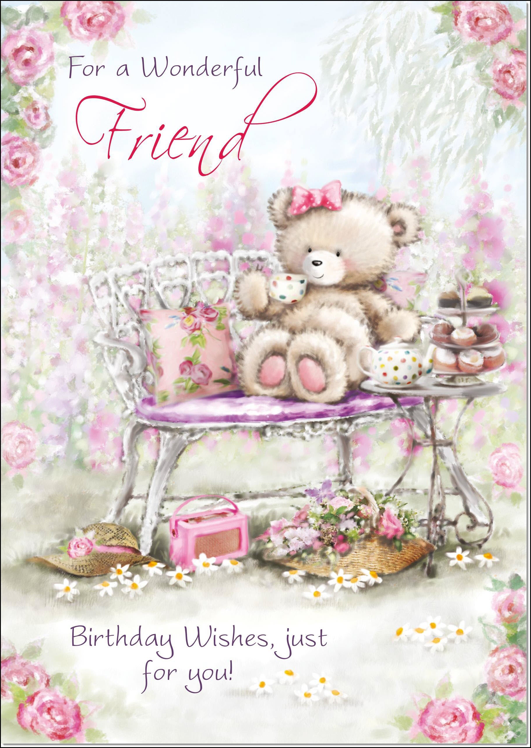 Friend Birthday Card for Her Cute Teddy's Afternoon Tea
