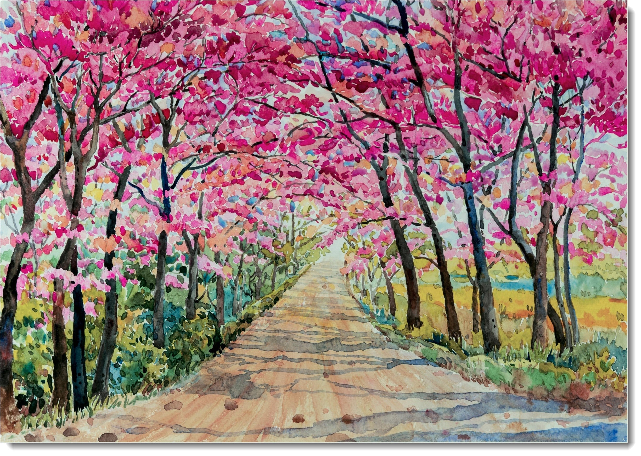Art Birthday Card Cherry Blossom Road