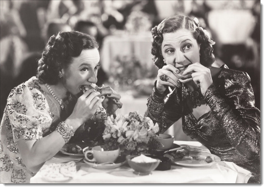 Blank Birthday Card No Words Enjoying Food and Gossip