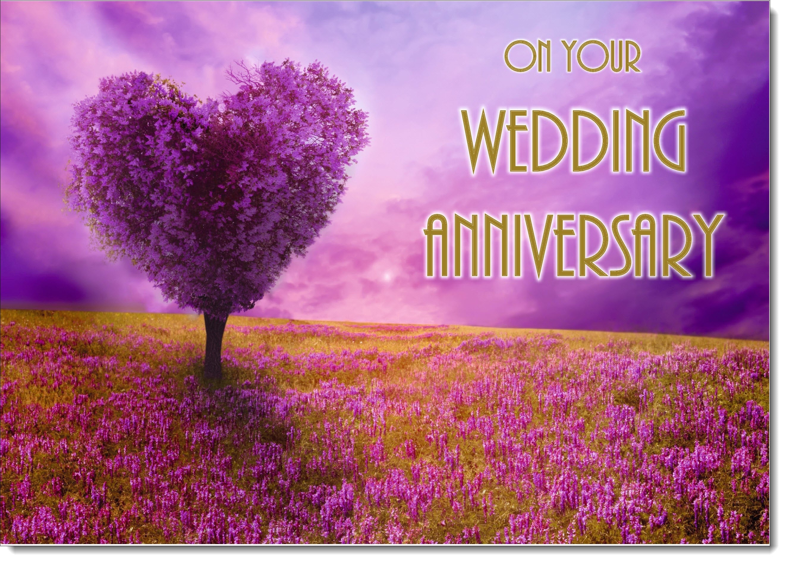 Your Wedding Anniversary Card Purple Love Heart Tree