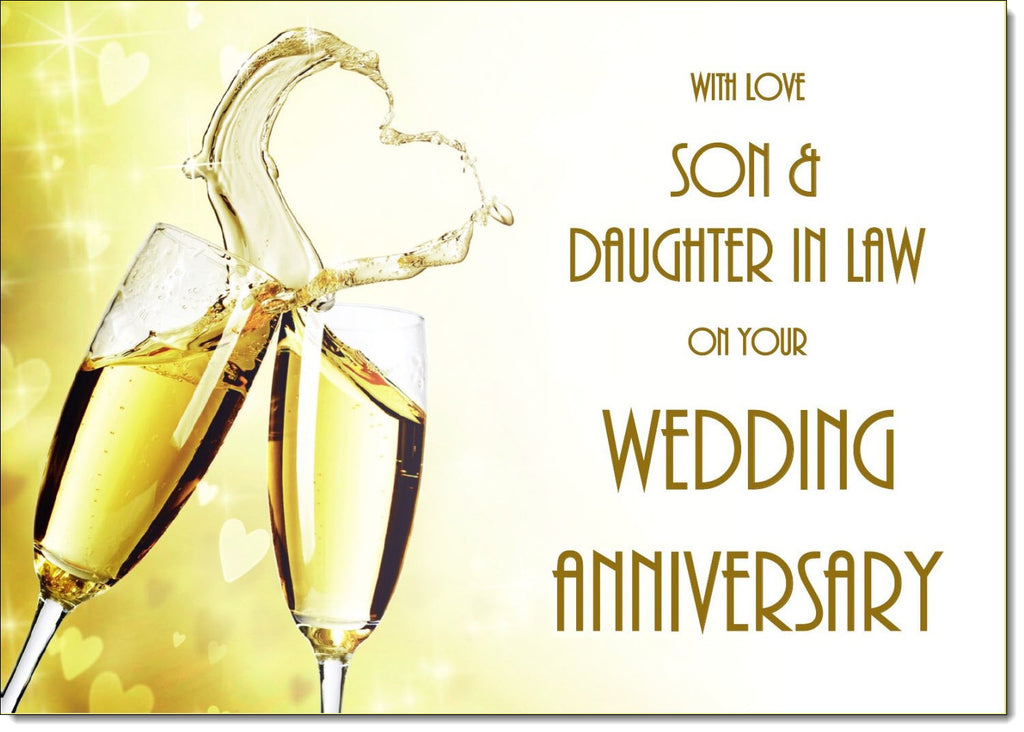Son & Daughter-in-Law Wedding Anniversary Card Love Heart Champagne Glasses