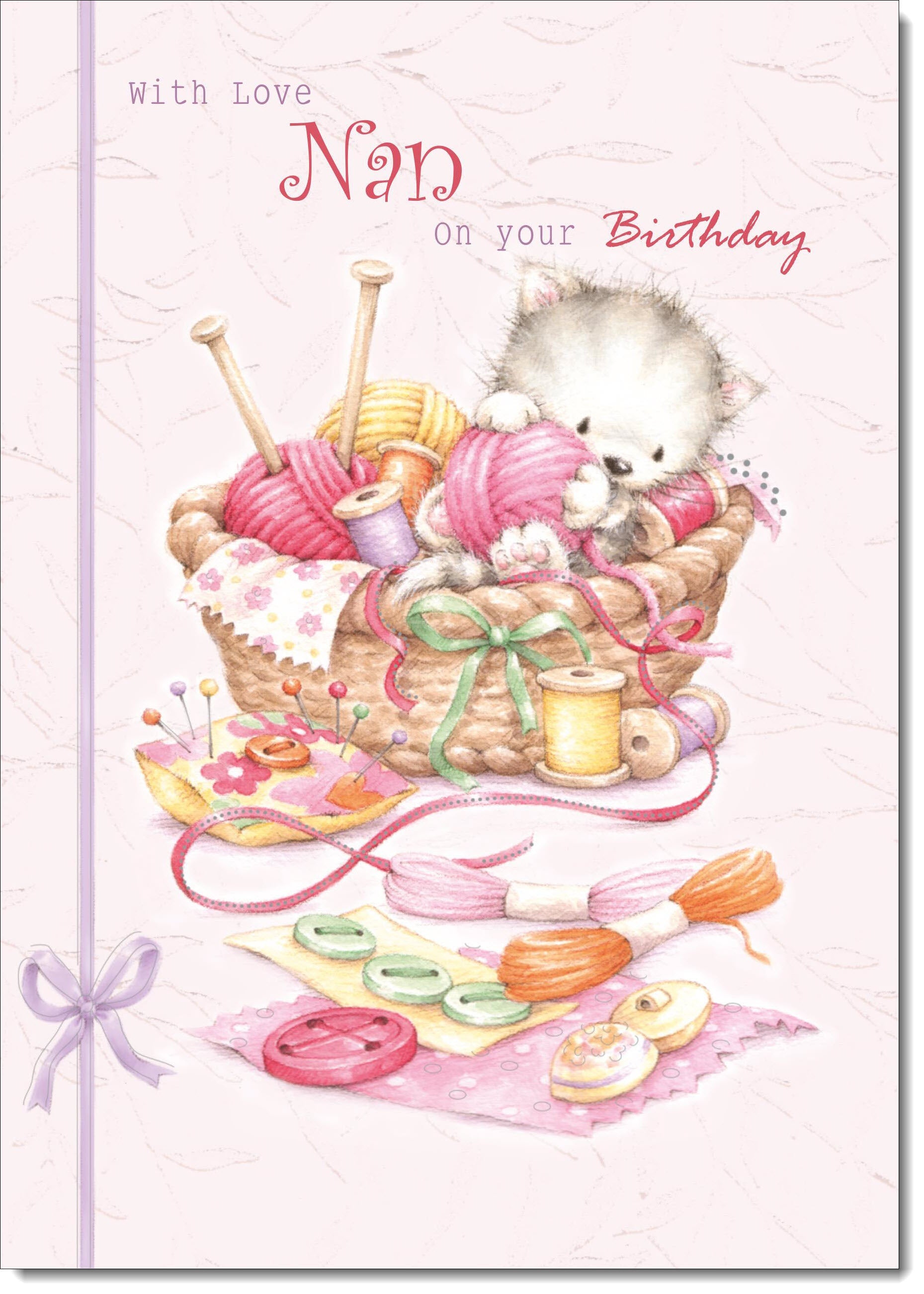 Nan Birthday Card Kitten in Sewing Basket
