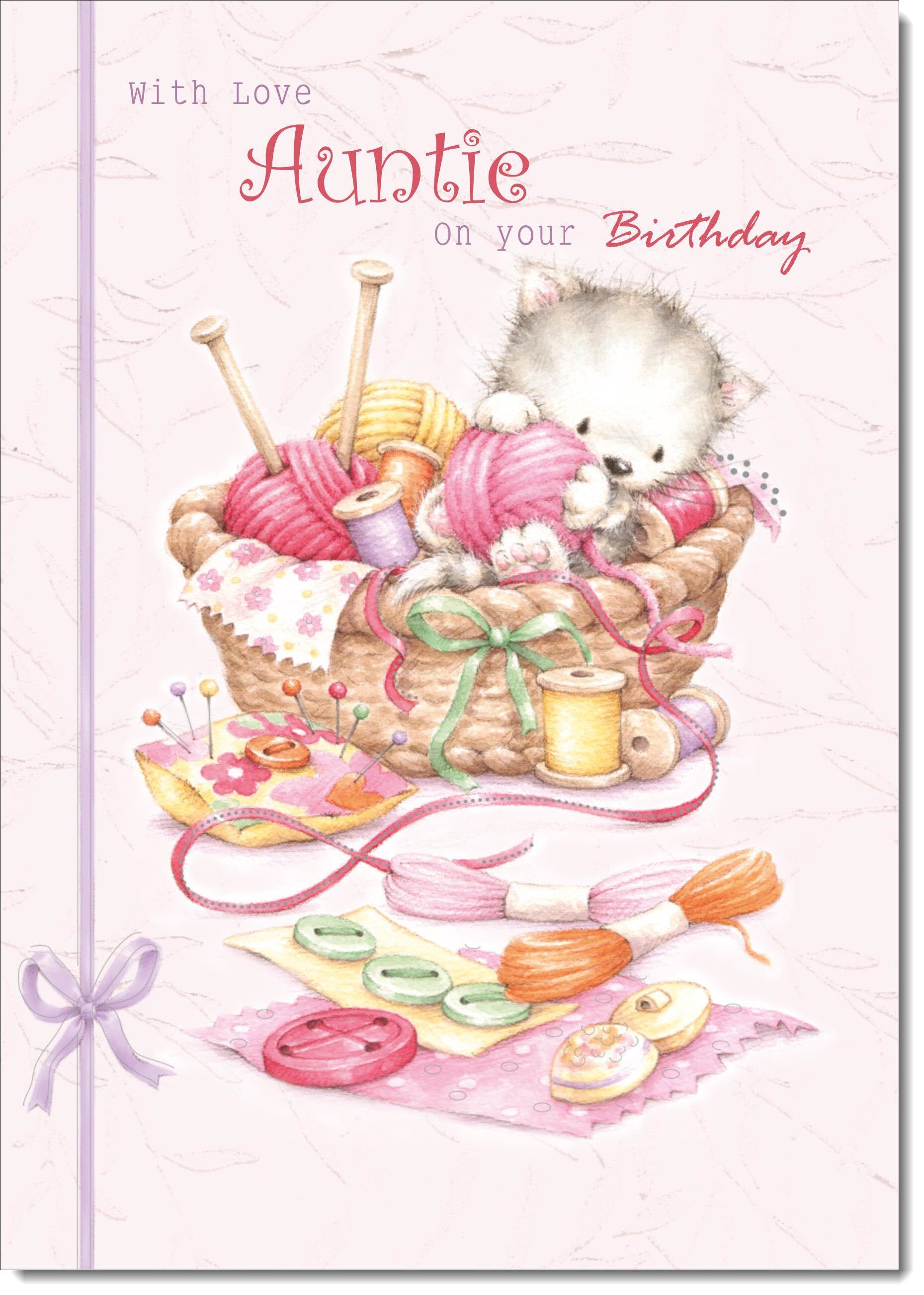 Auntie Birthday Card Kitten in Sewing Basket