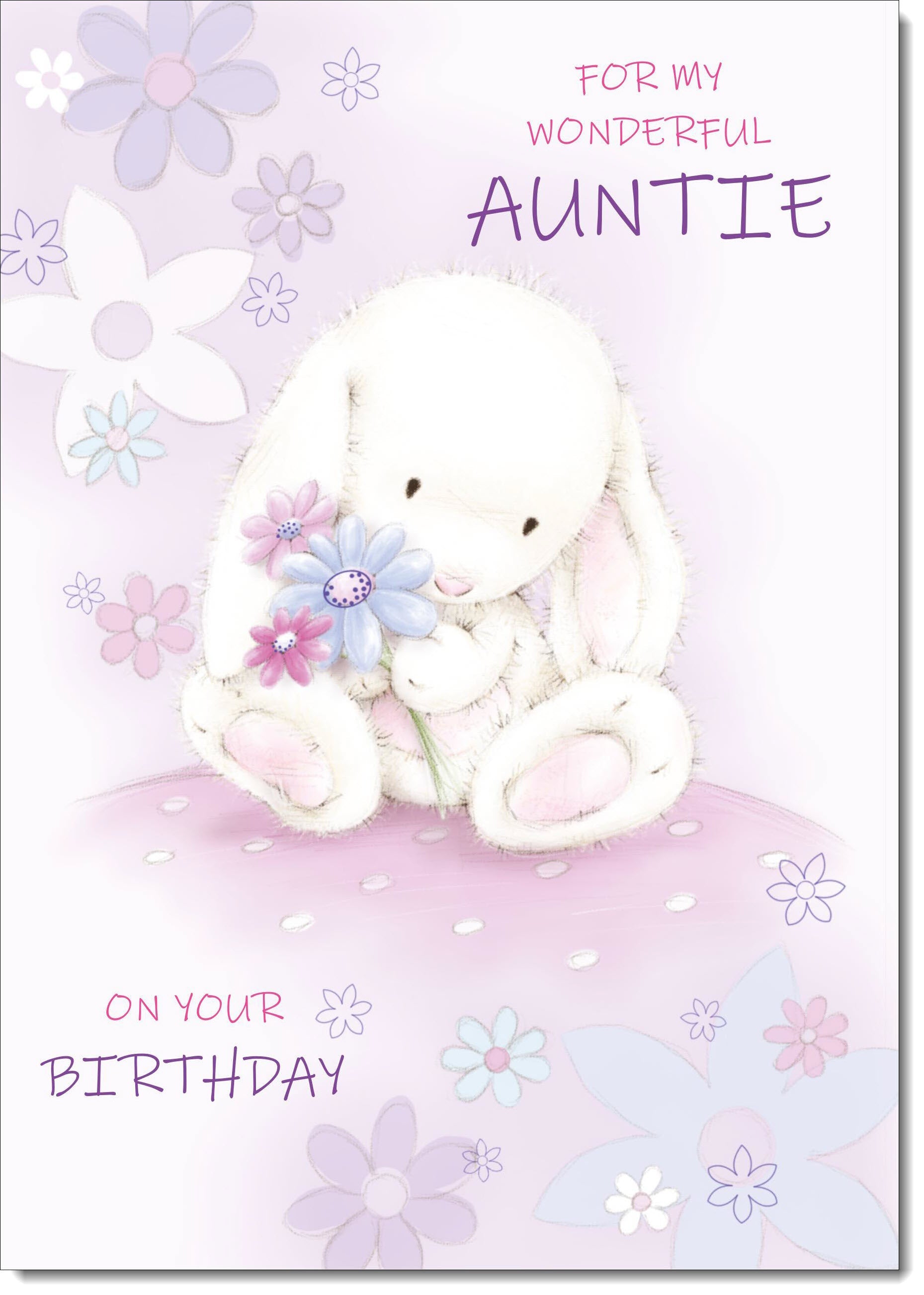 Auntie Birthday Card Cute Rabbit with Flowers