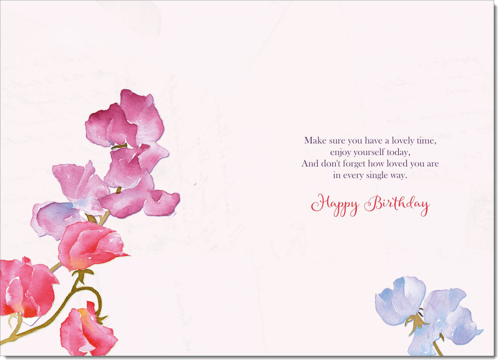 Godmother Birthday Card Sweet Pea and Hummingbirds