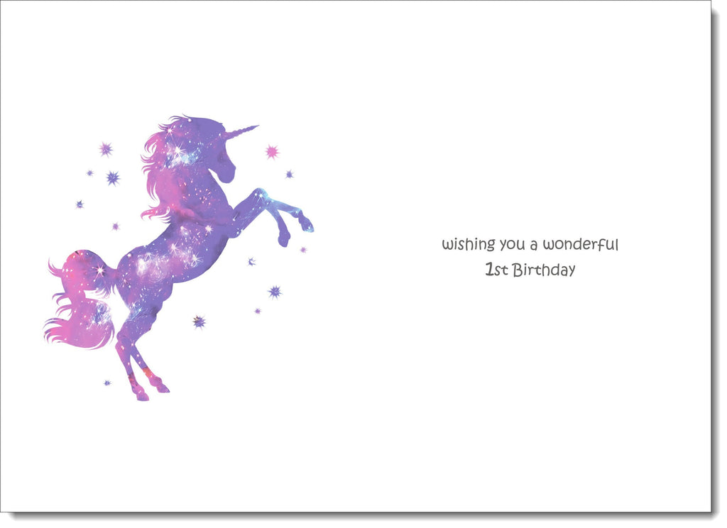 1st Birthday Card Age 1 for Girl Stardust Unicorn