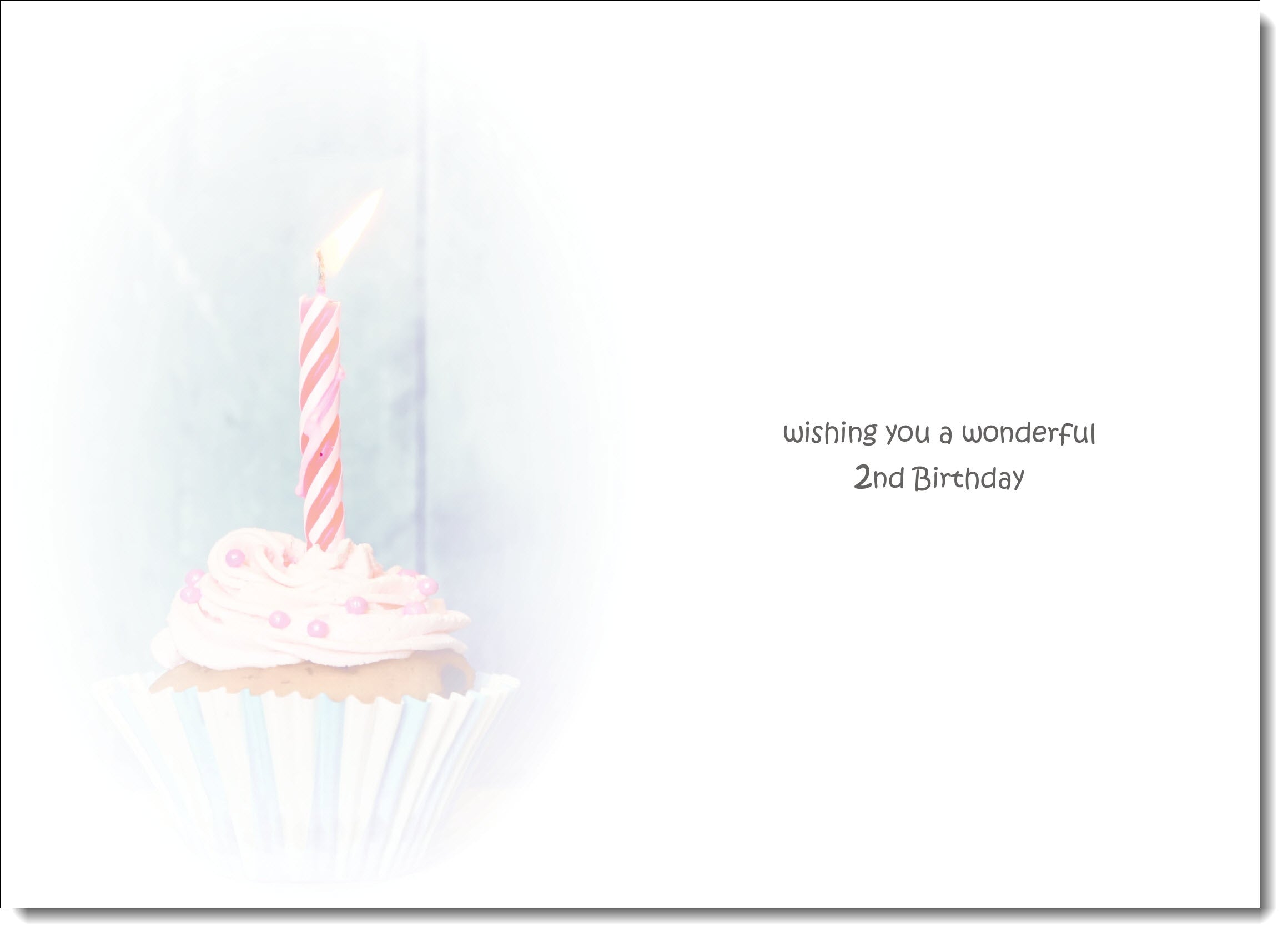 2nd Birthday Card Age 2 for Girl Cupcake and Pink Candle