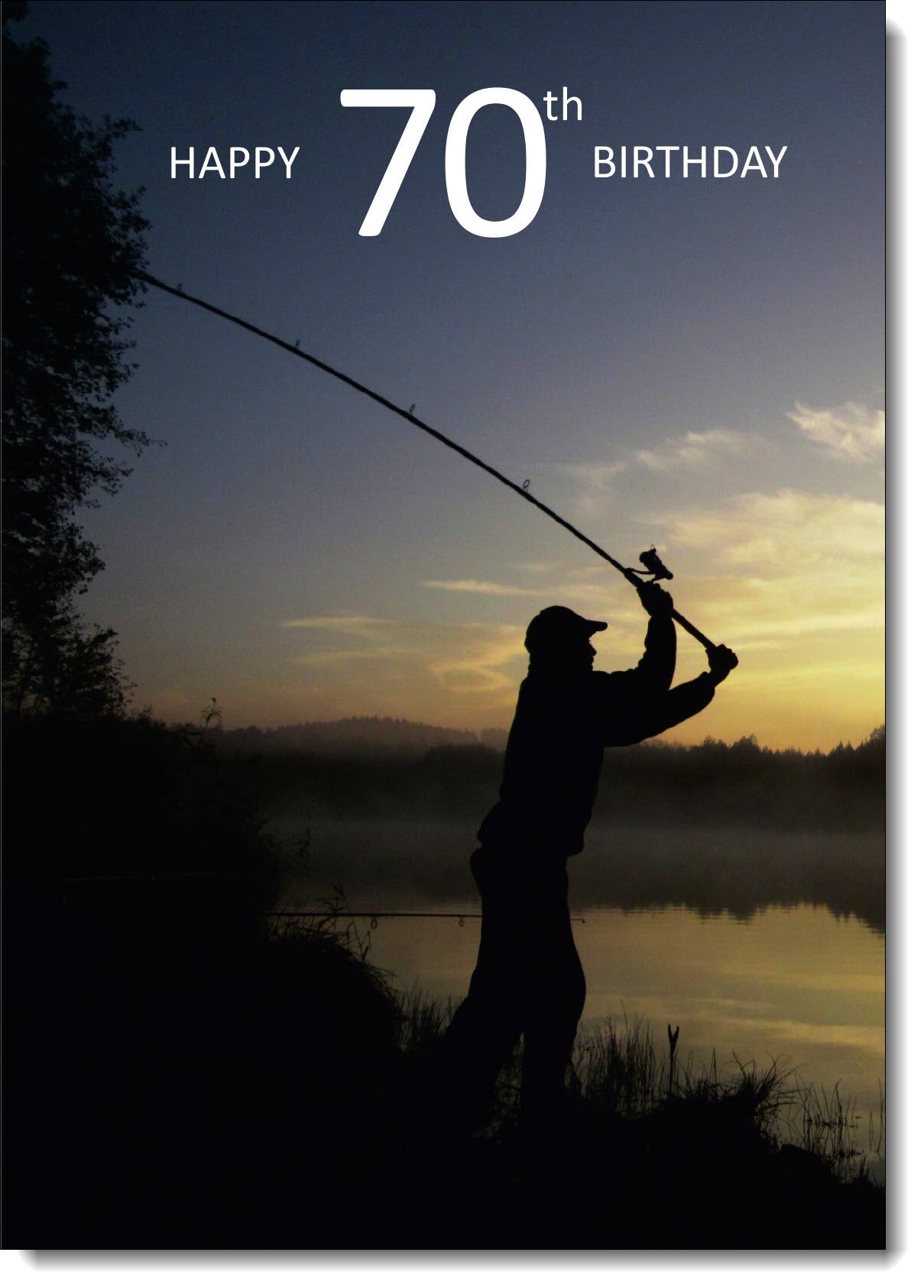 70th Birthday Card Age 70 for Him Fishing Silhouette