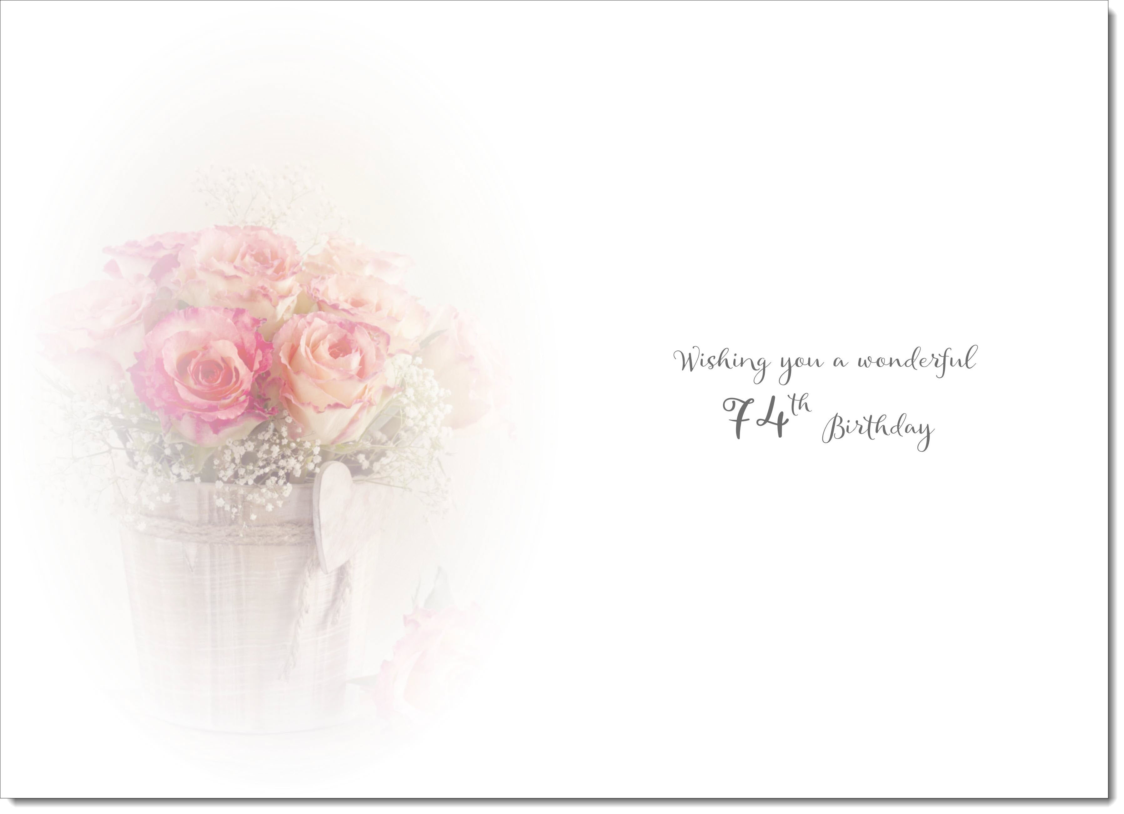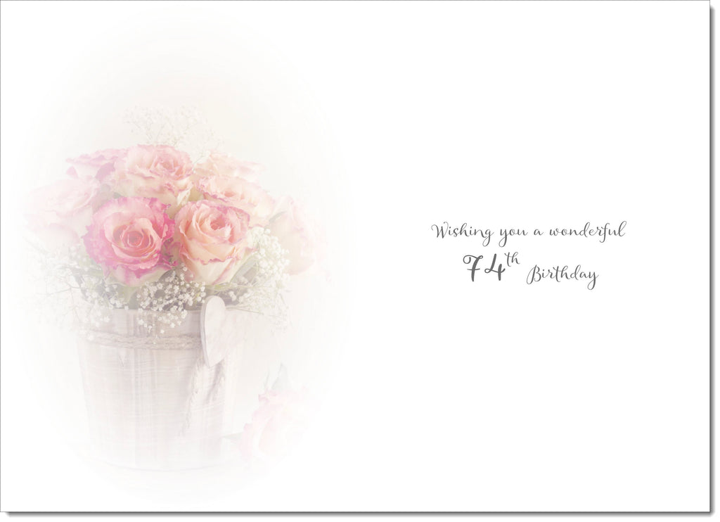 74th Birthday Card Age 74 for Her Pink Rose Bouquet