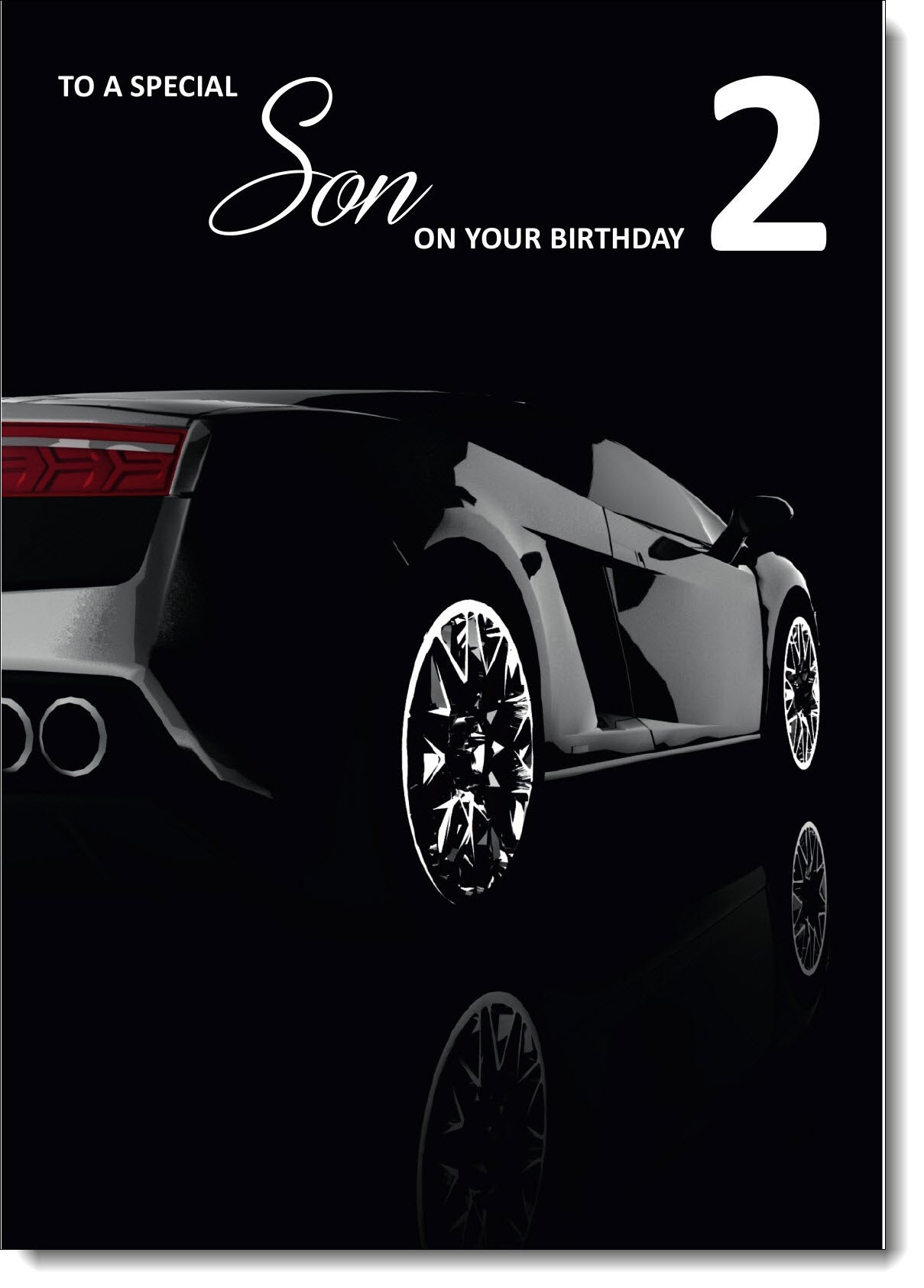 Son 2nd Birthday Card Age 2 Black Lamborghini