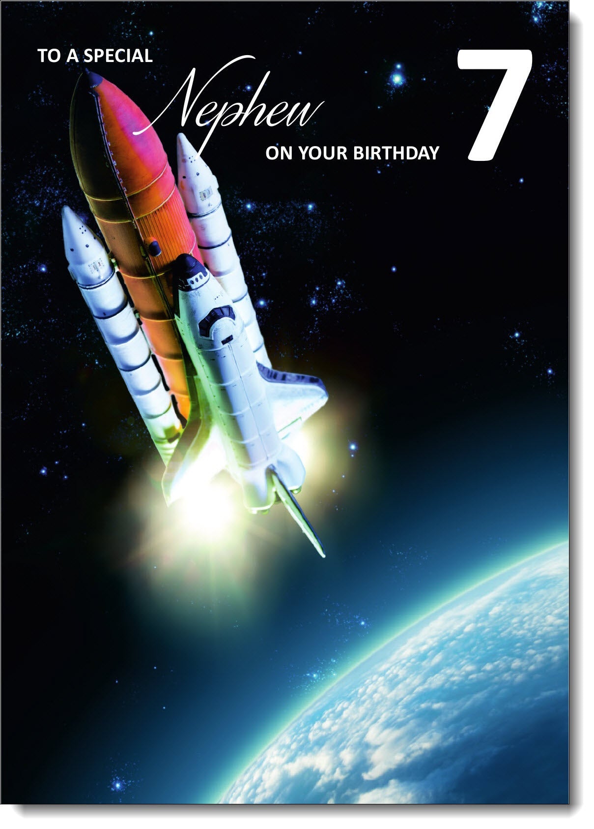 Nephew 7th Birthday Card Age 7 Rocket Ship in Space