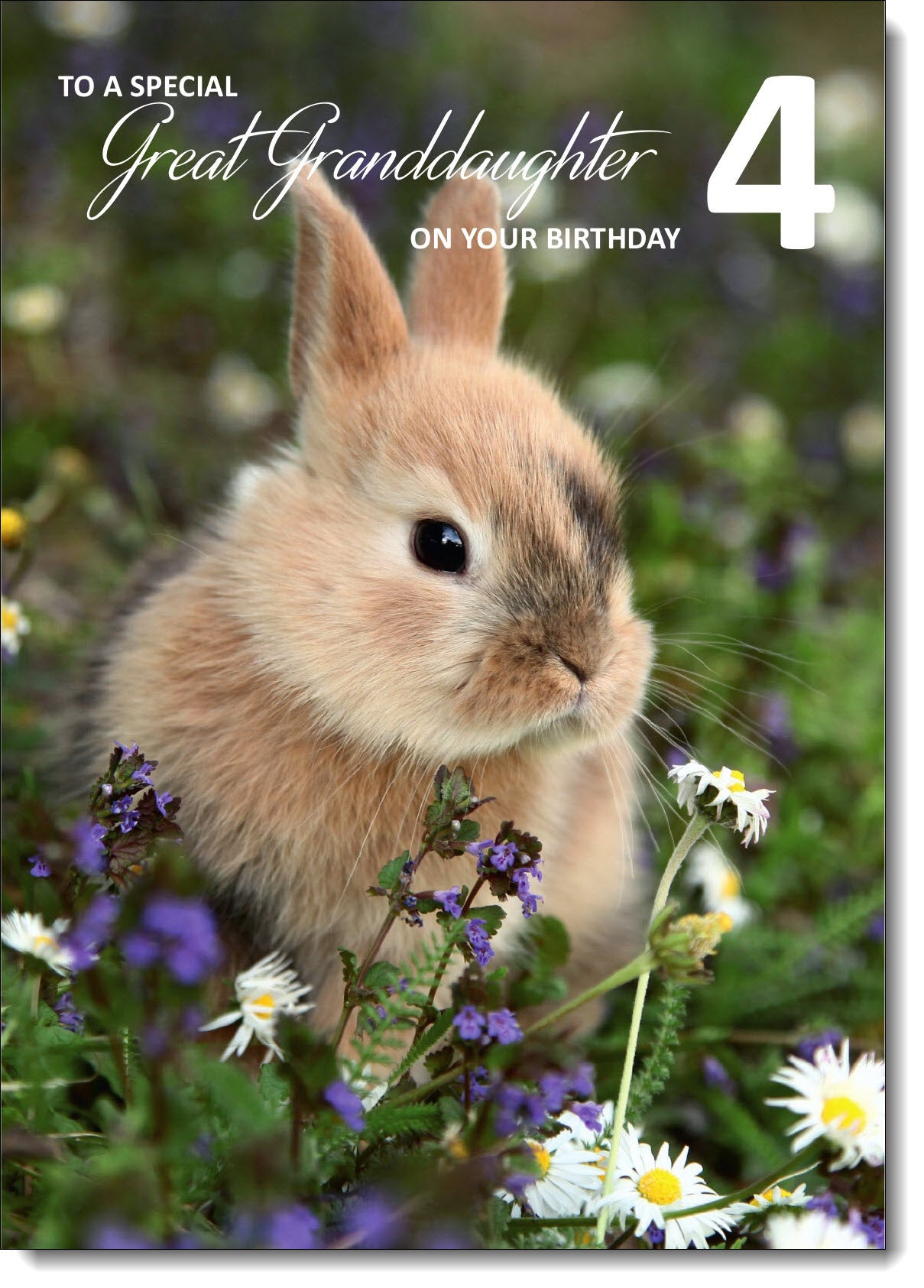 Great Granddaughter 4th Birthday Card Age 4 Bunny Rabbit