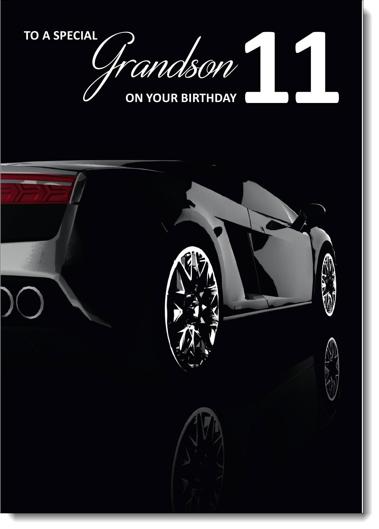 Grandson 11th Birthday Card Age 11 Black Lamborghini