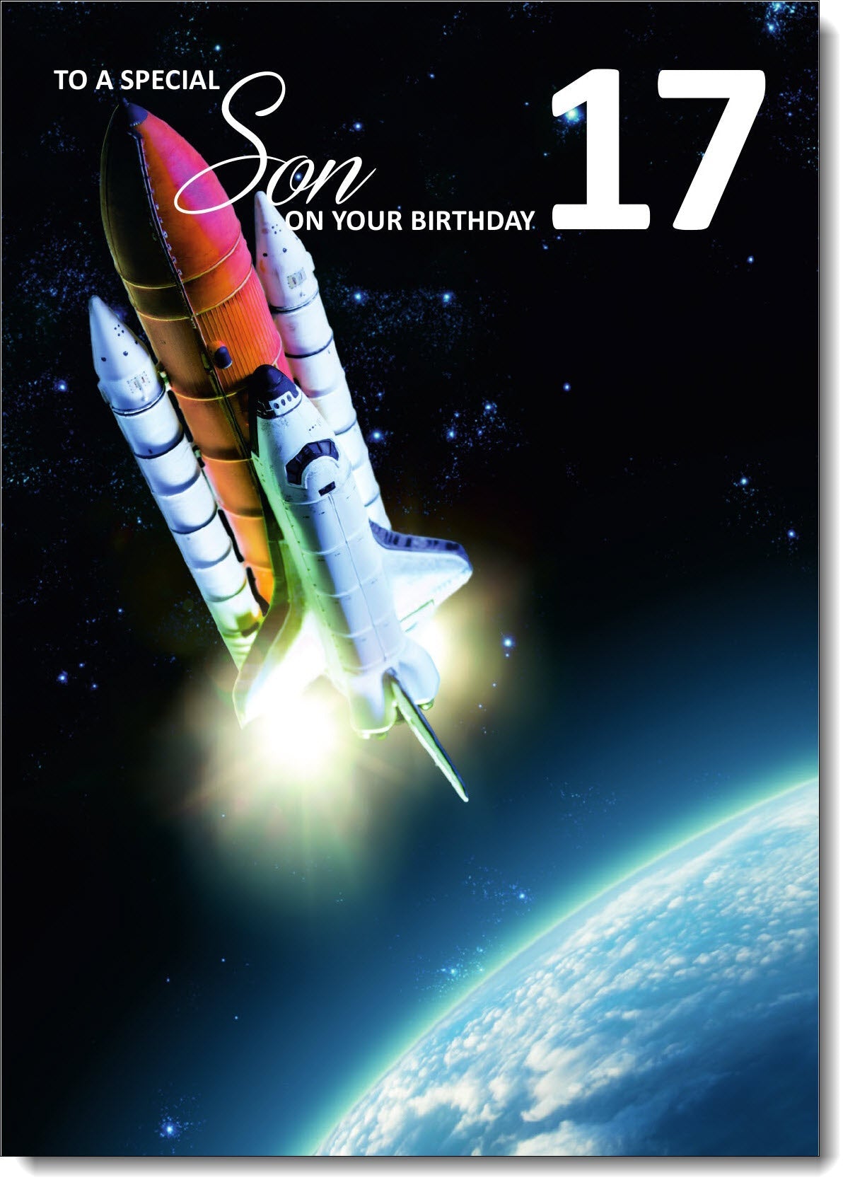 Son 17th Birthday Card Age 17 Rocket Ship in Space