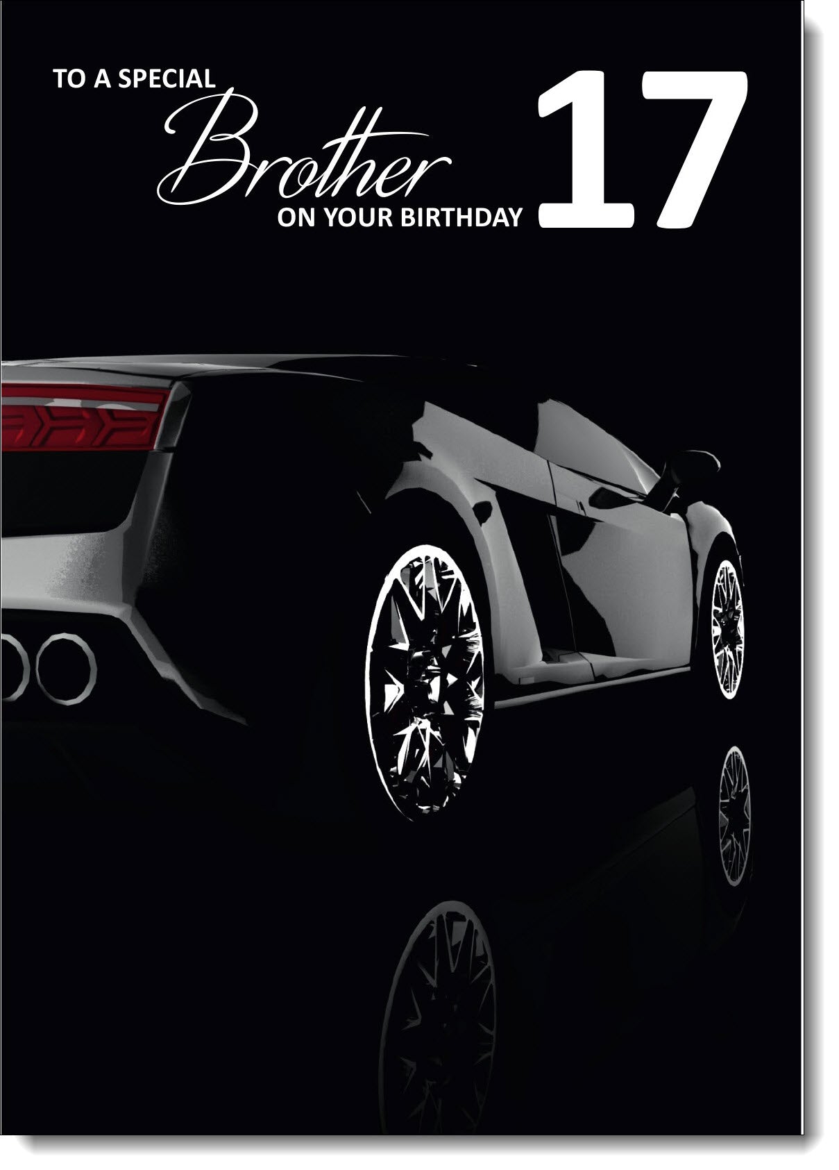Brother 17th Birthday Card Age 17 Black Lamborghini