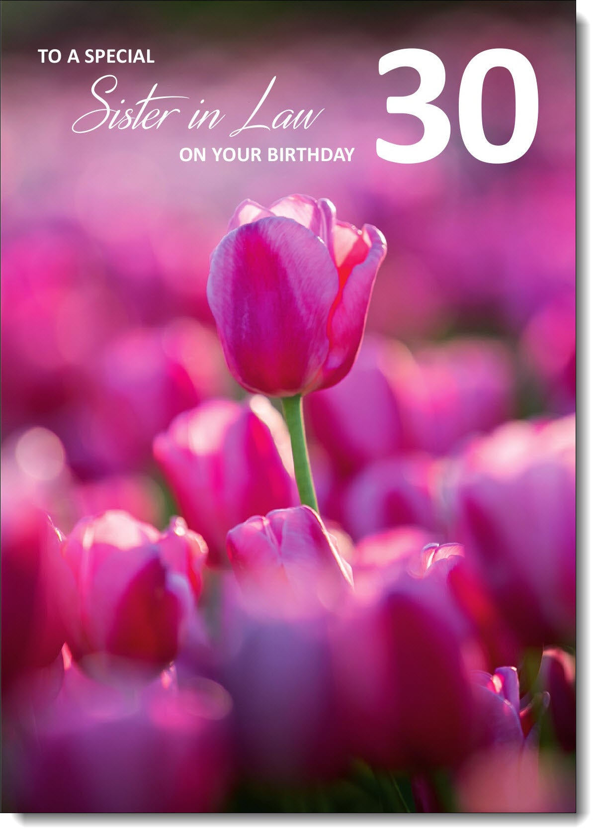Sister-in-Law 30th Birthday Card Age 30 Pink Tulip Field