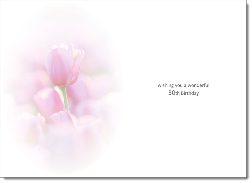 Sister-in-Law 50th Birthday Card Age 50 Pink Tulip Field