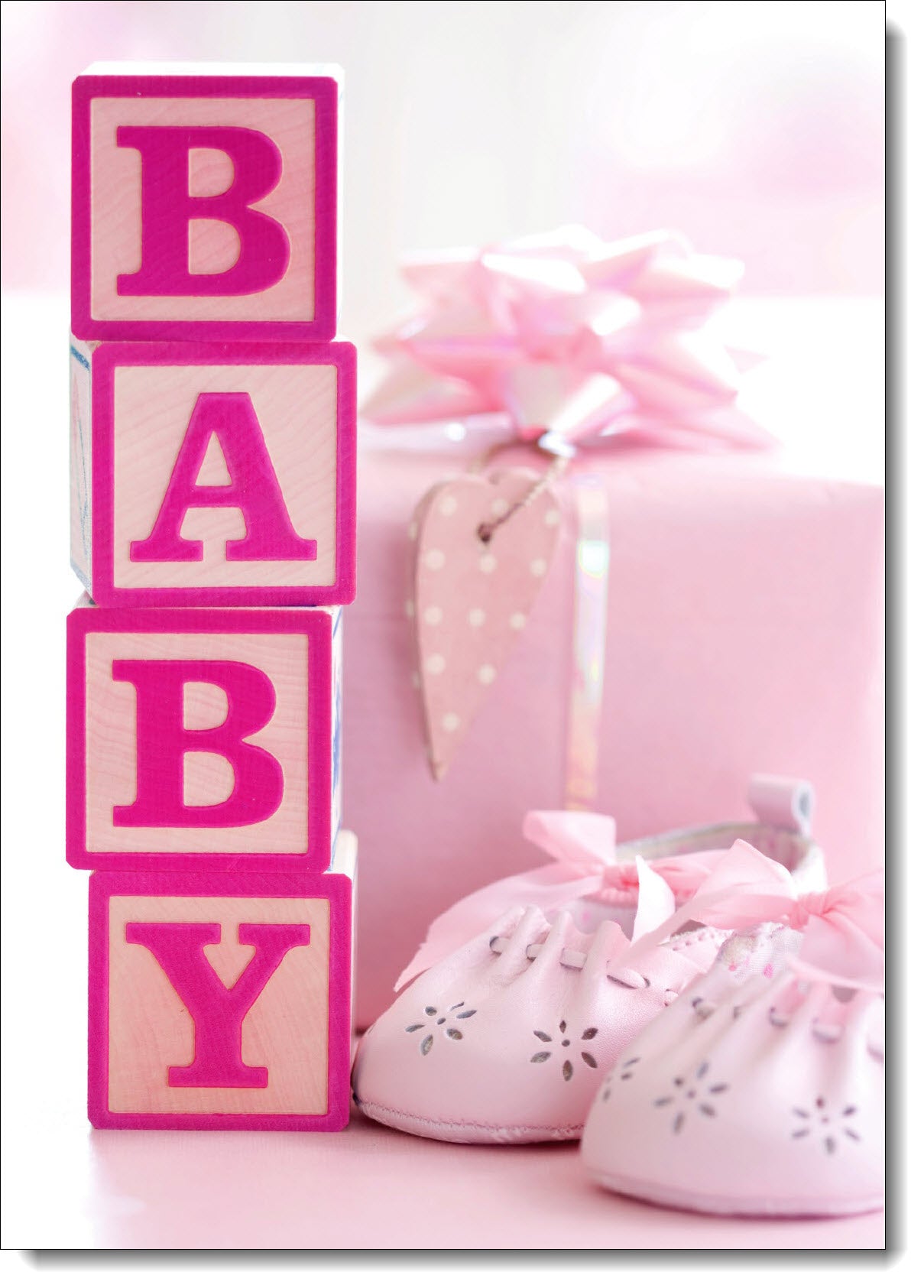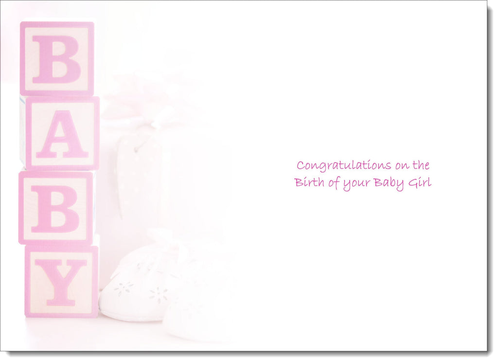 New Baby Girl Birth Congratulations Card Building Blocks and Shoes