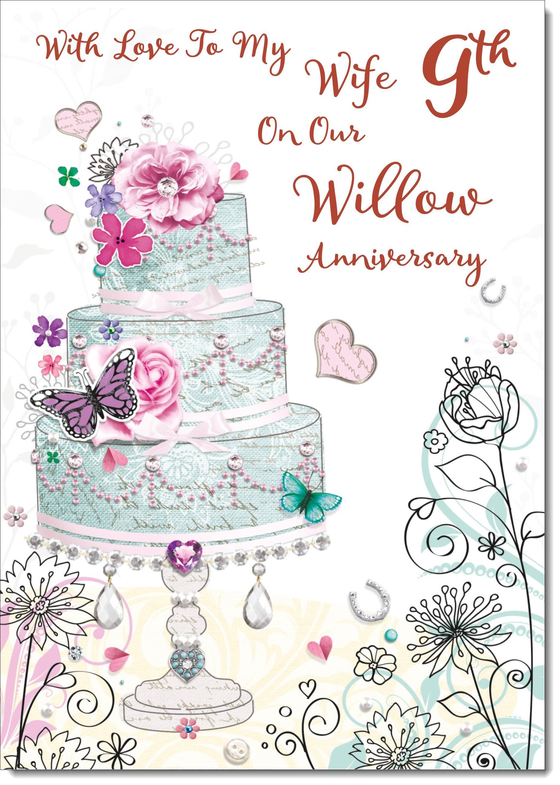Wife Willow 9th Wedding Anniversary Card Wedding Cake