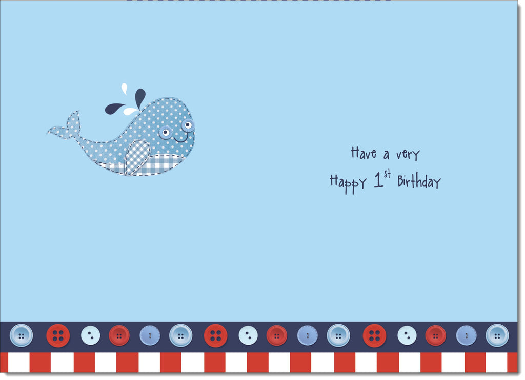 1st Birthday Card Age 1 for Boy Cartoon Whale