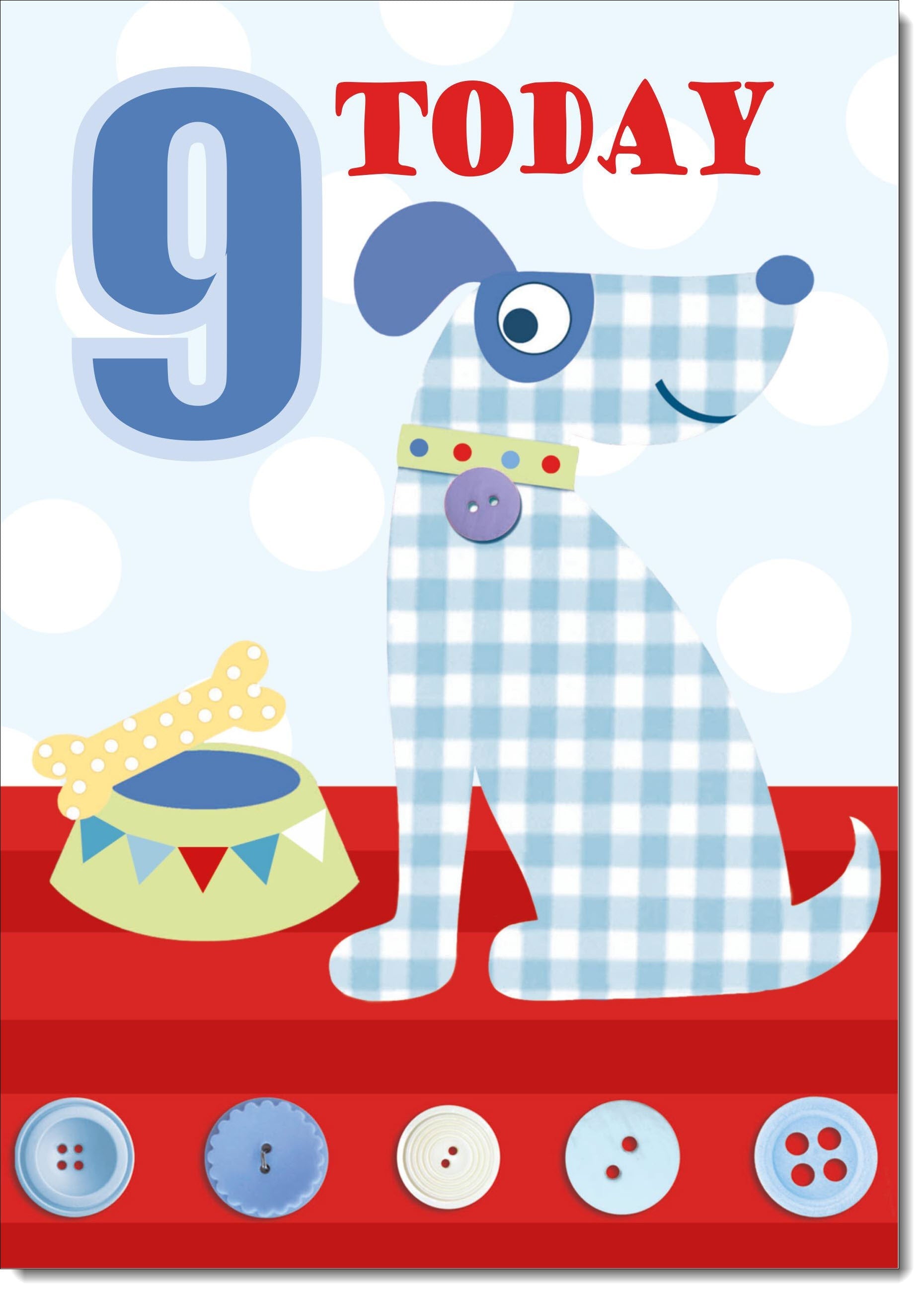 9th Birthday Card Age 9 for Boy Cartoon Dog