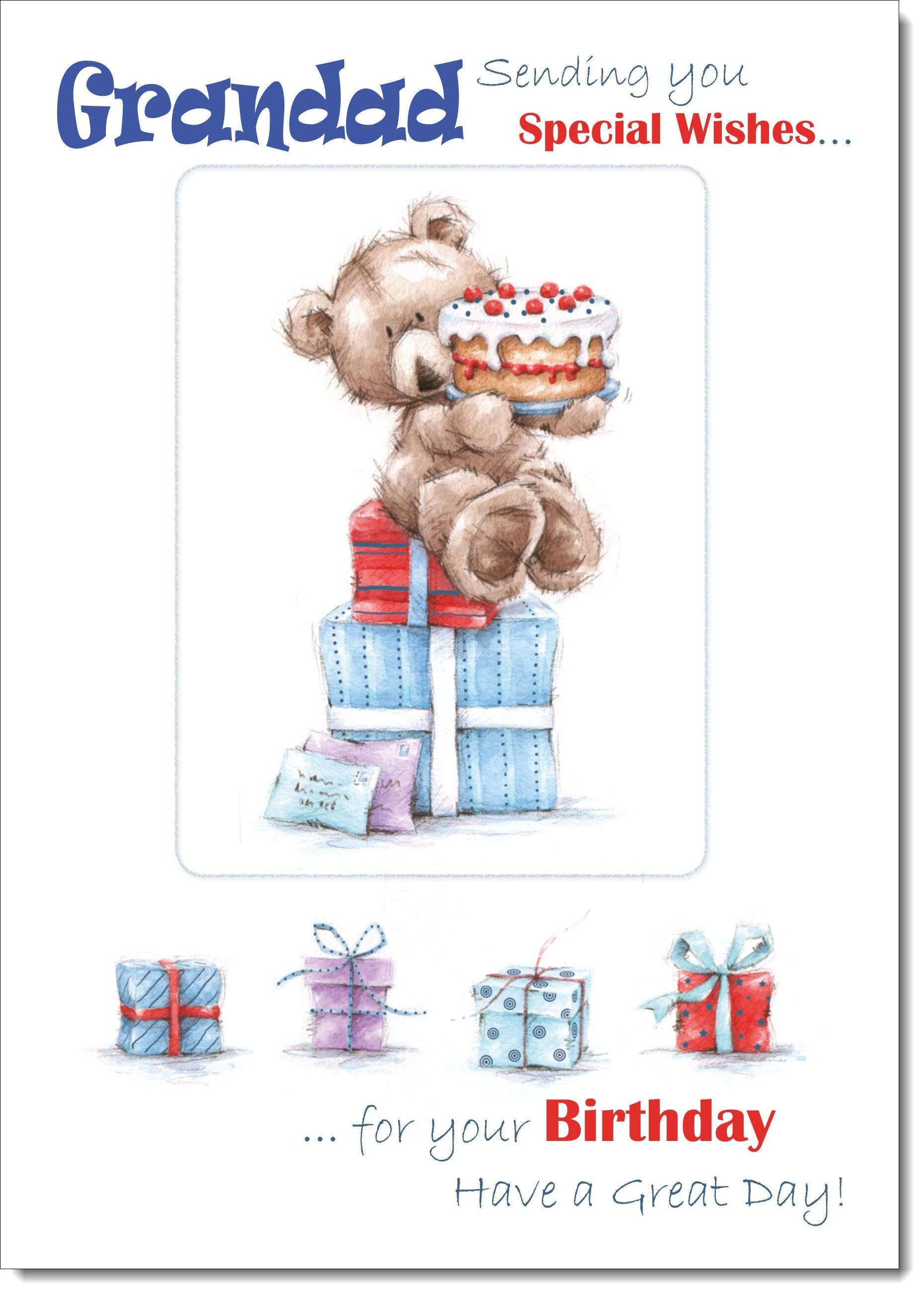 Grandad Birthday Card Cute Bear with Cake