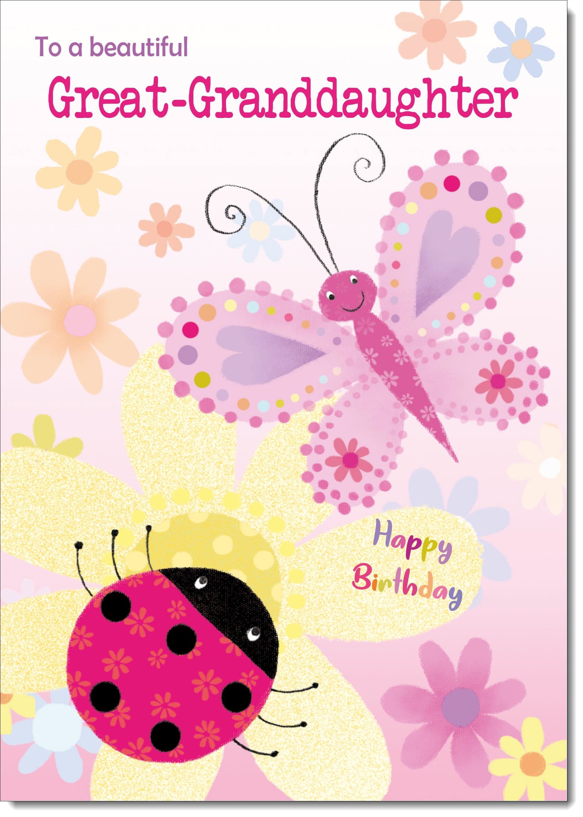 Great Granddaughter Birthday Card Ladybird and Butterfly