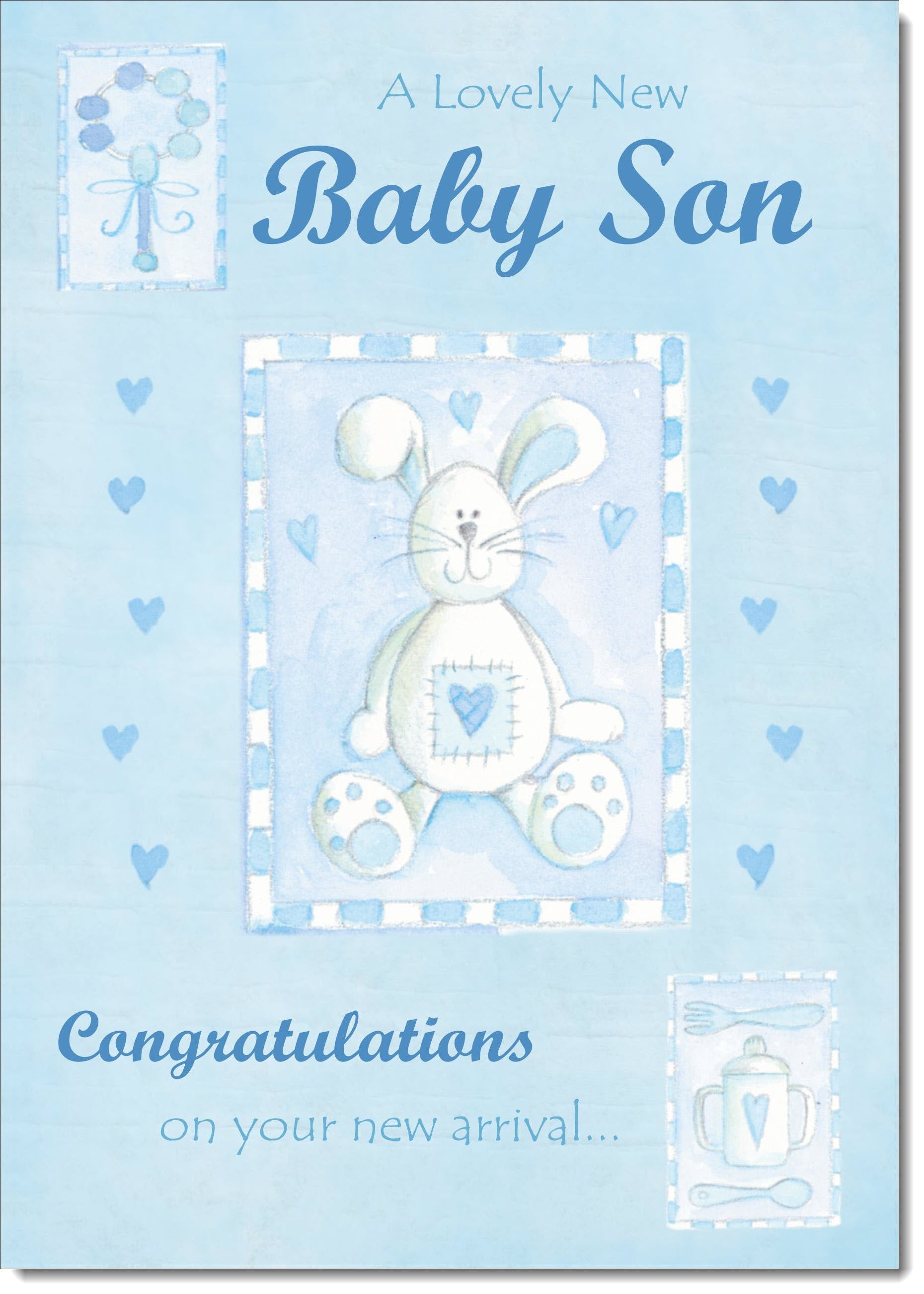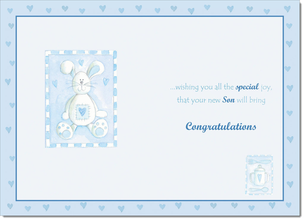 New Baby Boy Birth Congratulations Card Toy Rabbit