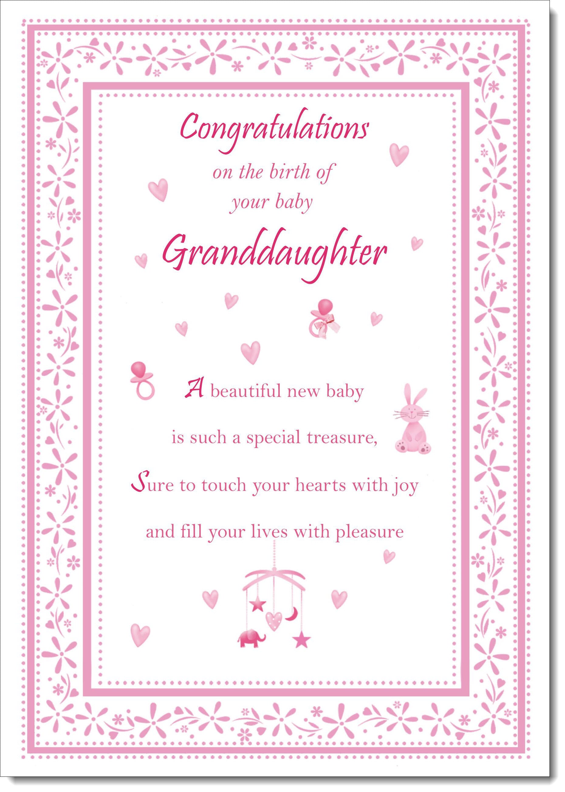 On The Birth Of Your Granddaughter New Baby Girl Congratulations Card Border