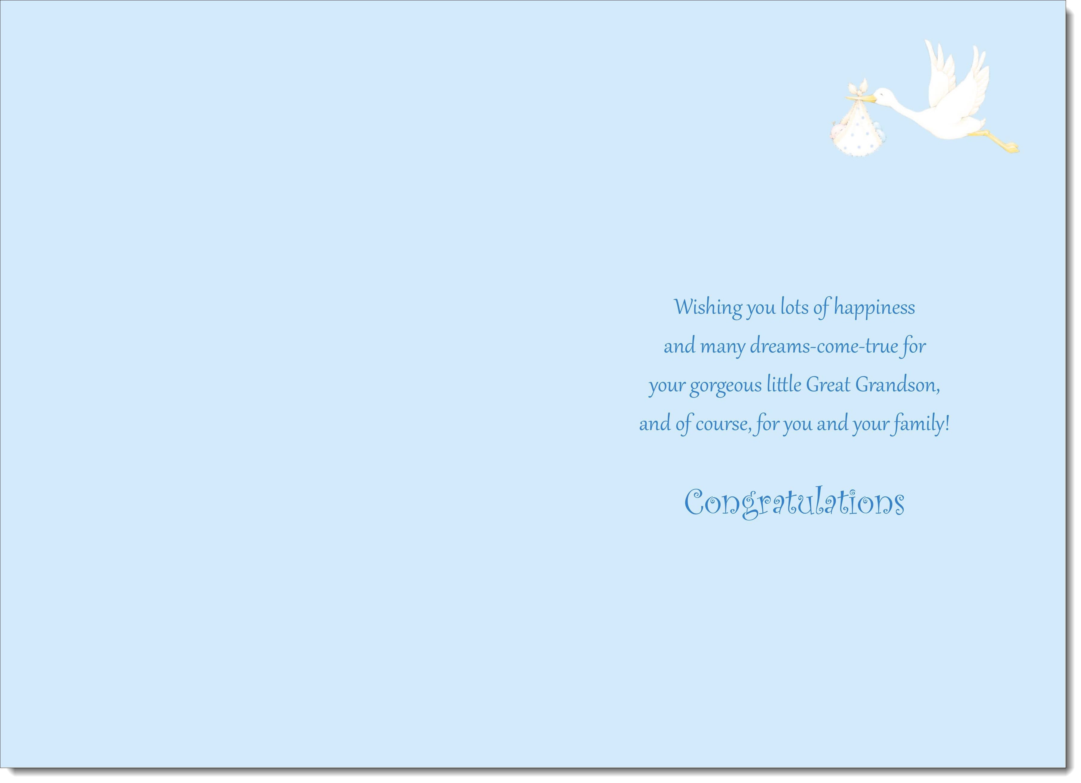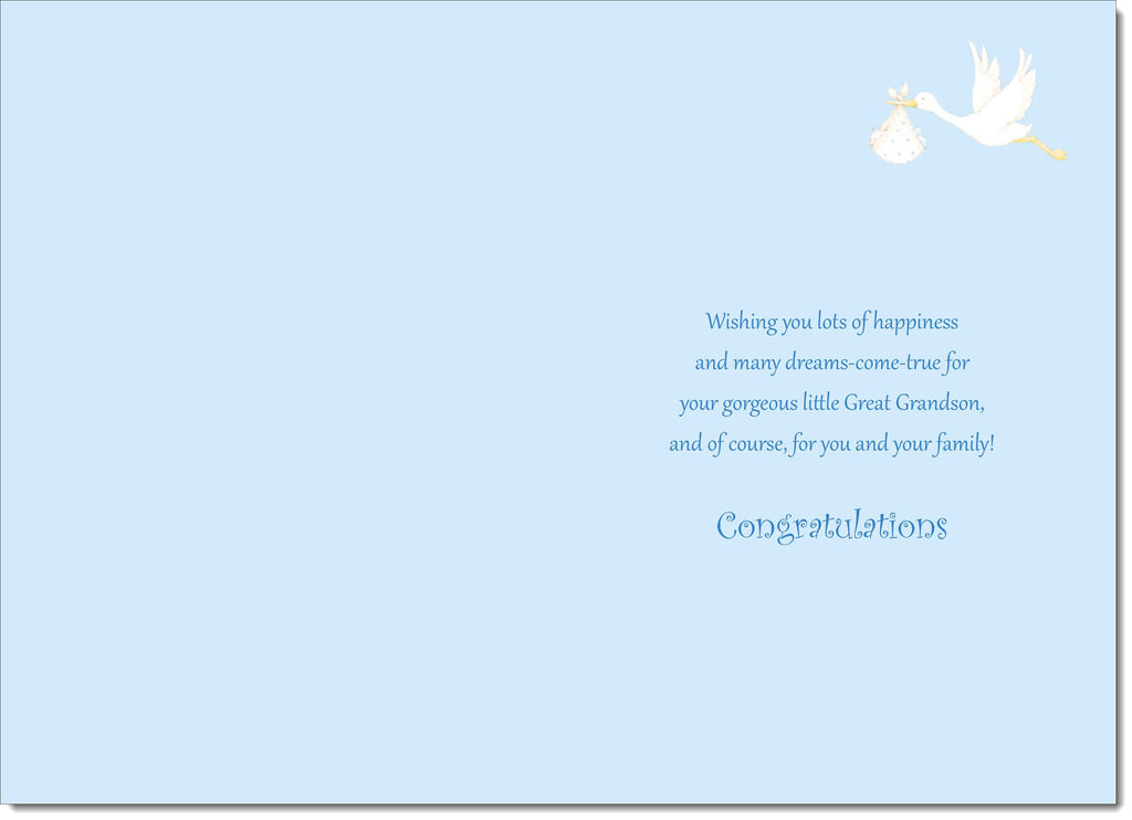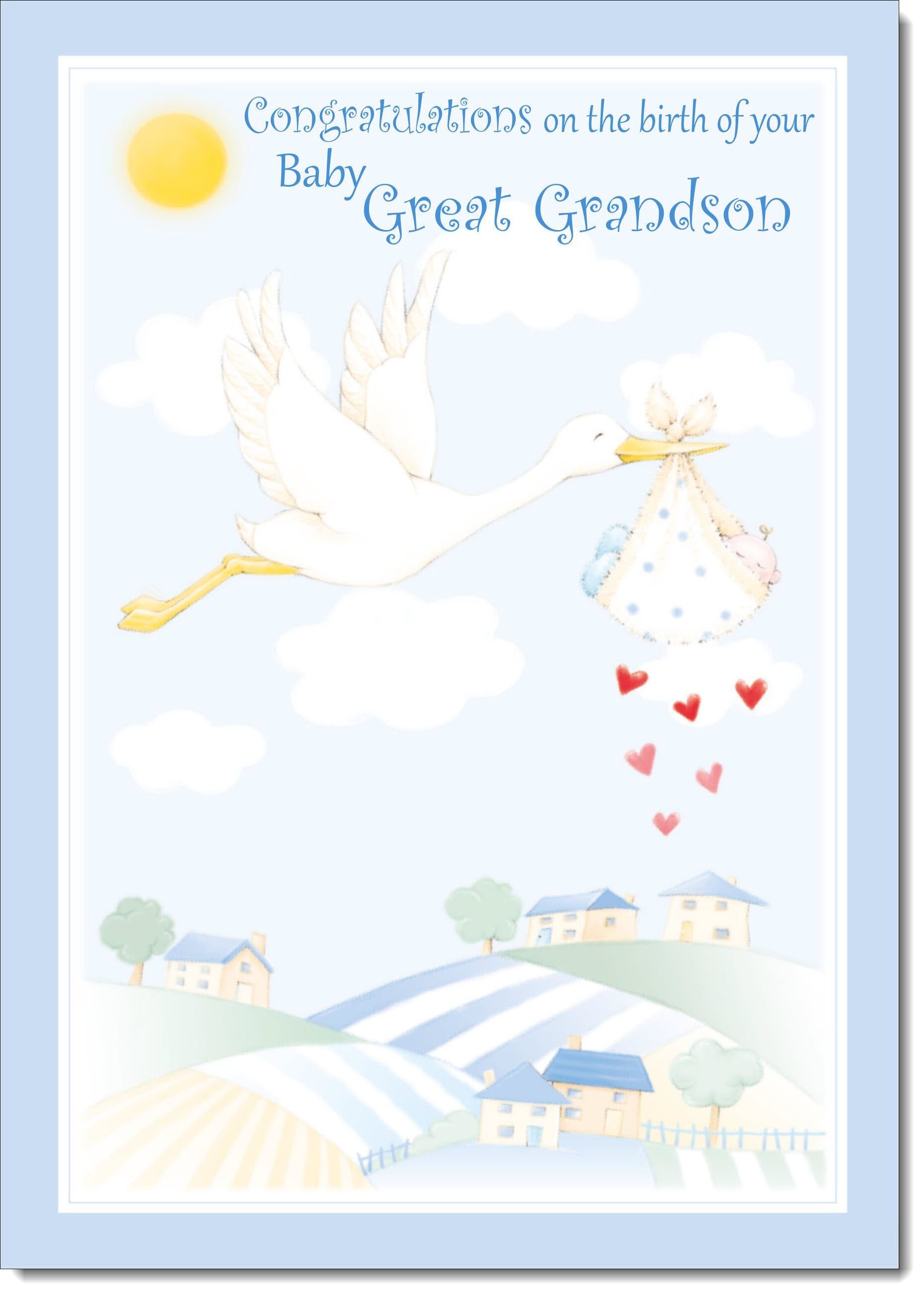 On The Birth Of Your Great Grandson New Baby Boy Congratulations Card Stork