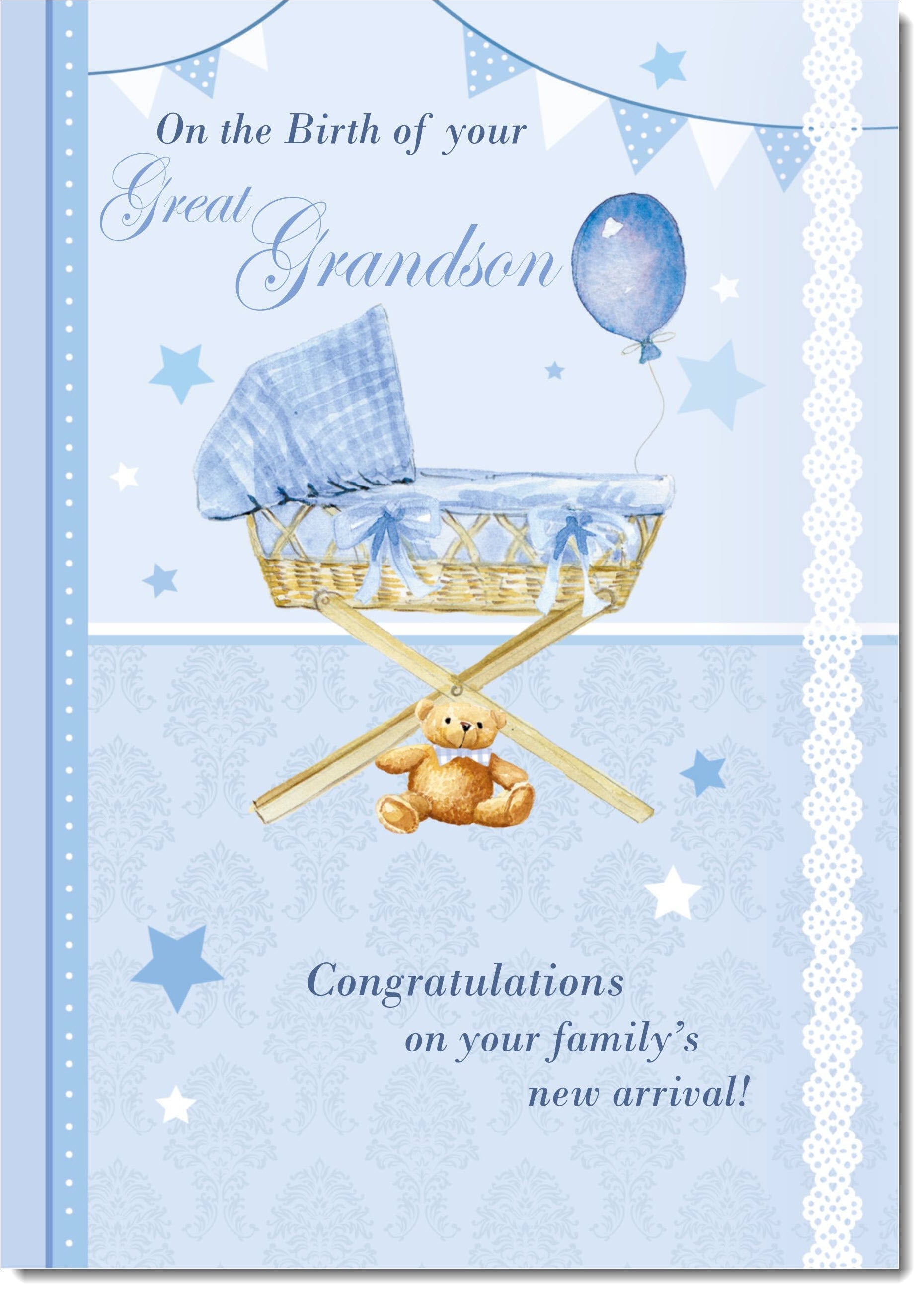 On The Birth Of Your Great Grandson New Baby Boy Congratulations Card Baby Basket