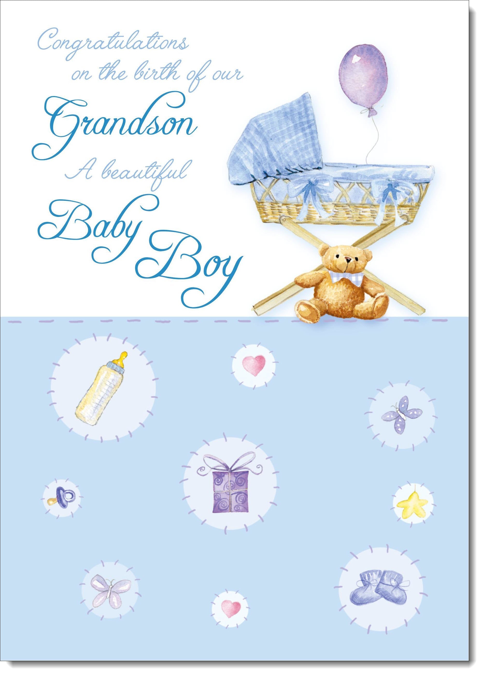 On The Birth Of Our Grandson New Baby Boy Congratulations Card Baby Basket