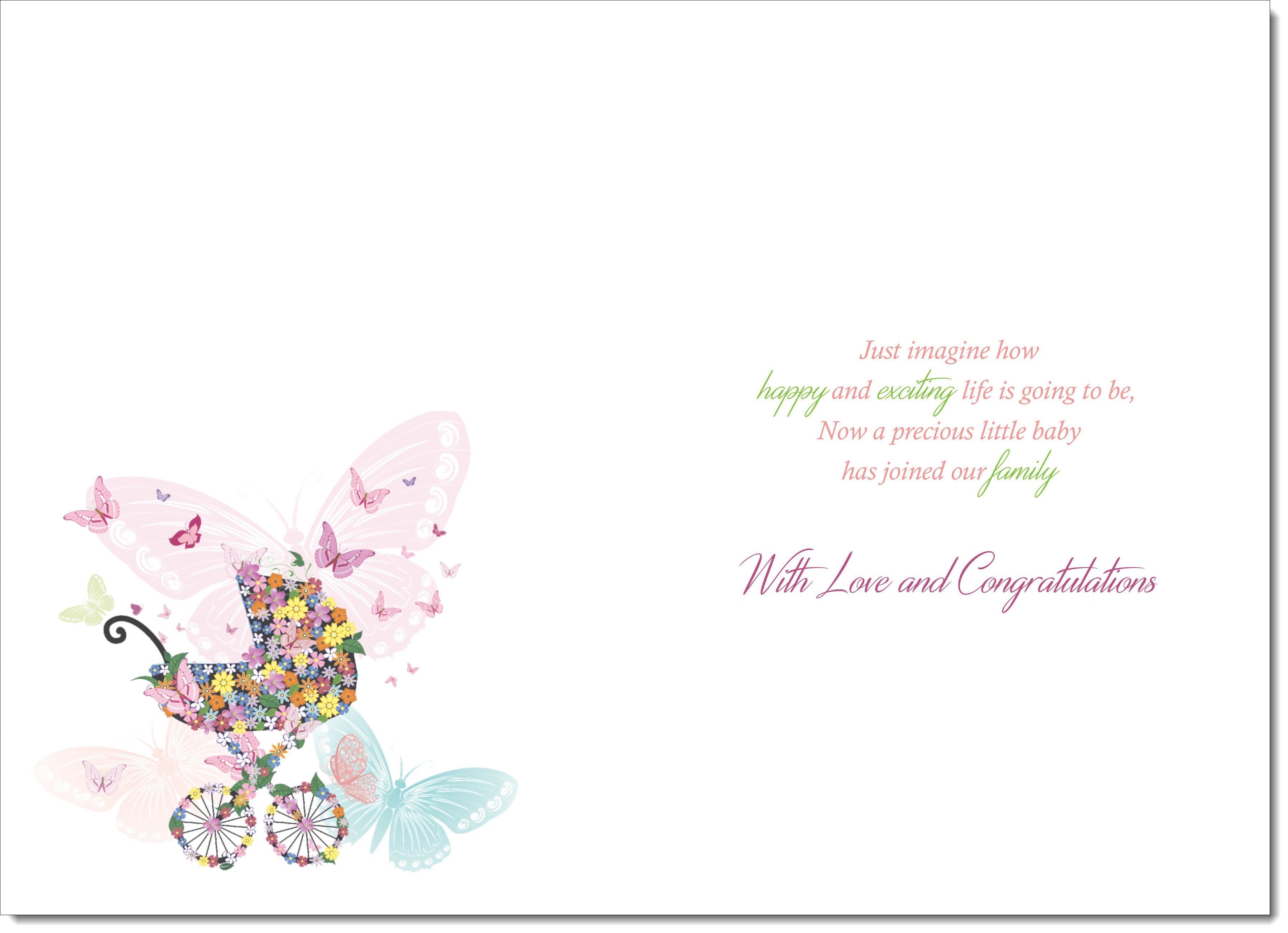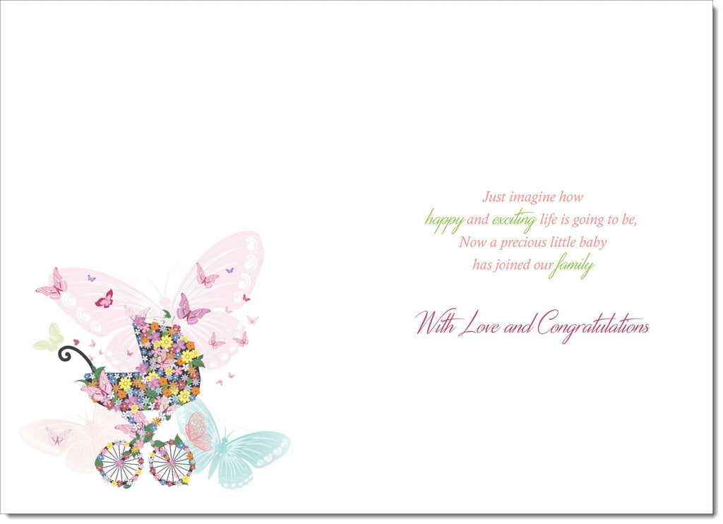 On The Birth Of Our Grandchild New Baby Congratulations Card Butterfly Pram