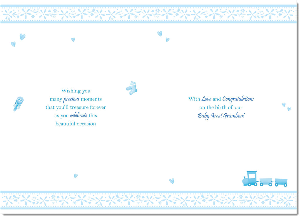 On The Birth Of Our Great Grandson New Baby Boy Congratulations Card Border