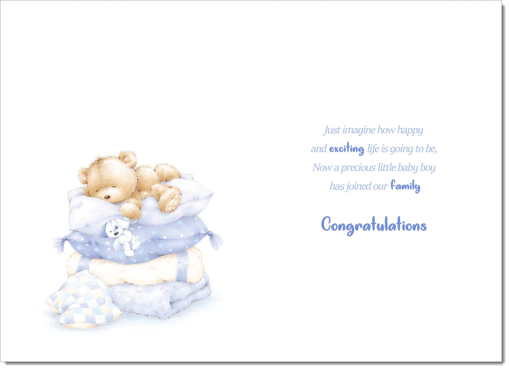 On The Birth Of Our Great Grandson New Baby Boy Congratulations Card Cute Teddy