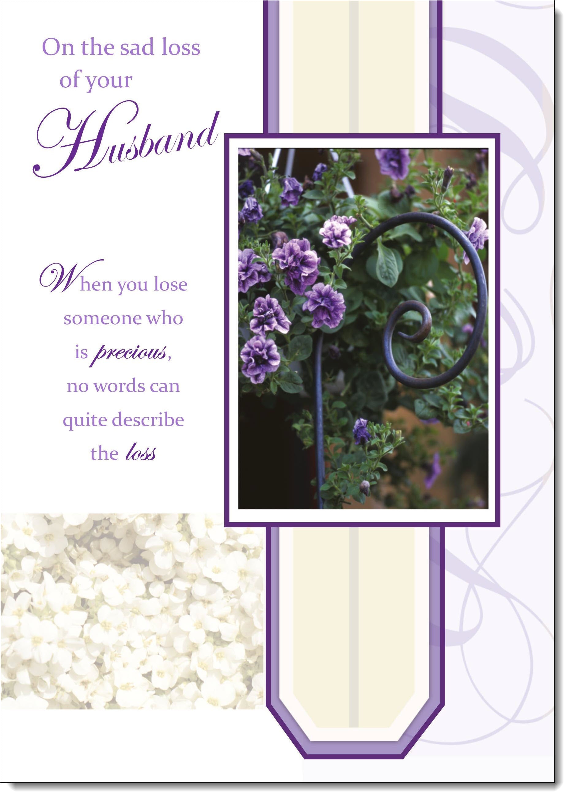 Loss Of Husband Sympathy Condolence Bereavement Card Purple Flowers