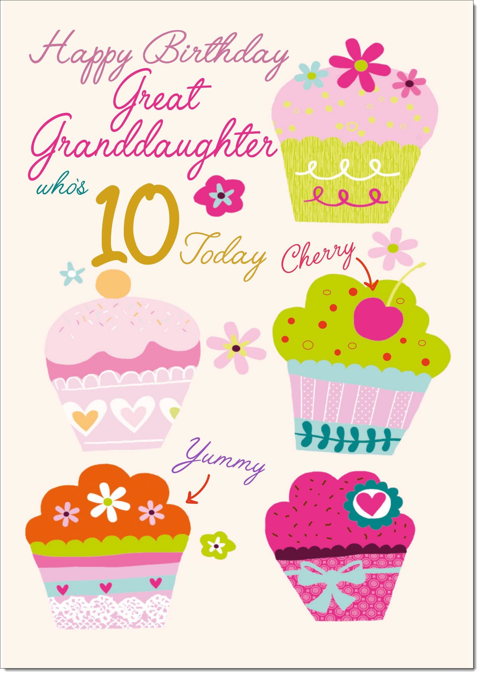 Great Granddaughter 10th Birthday Card Age 10 Bright Cupcakes