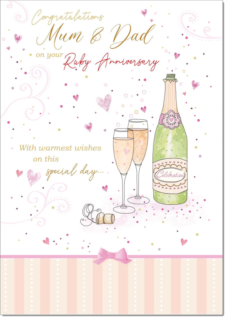 Mum & Dad Ruby 40th Wedding Anniversary Card Champagne