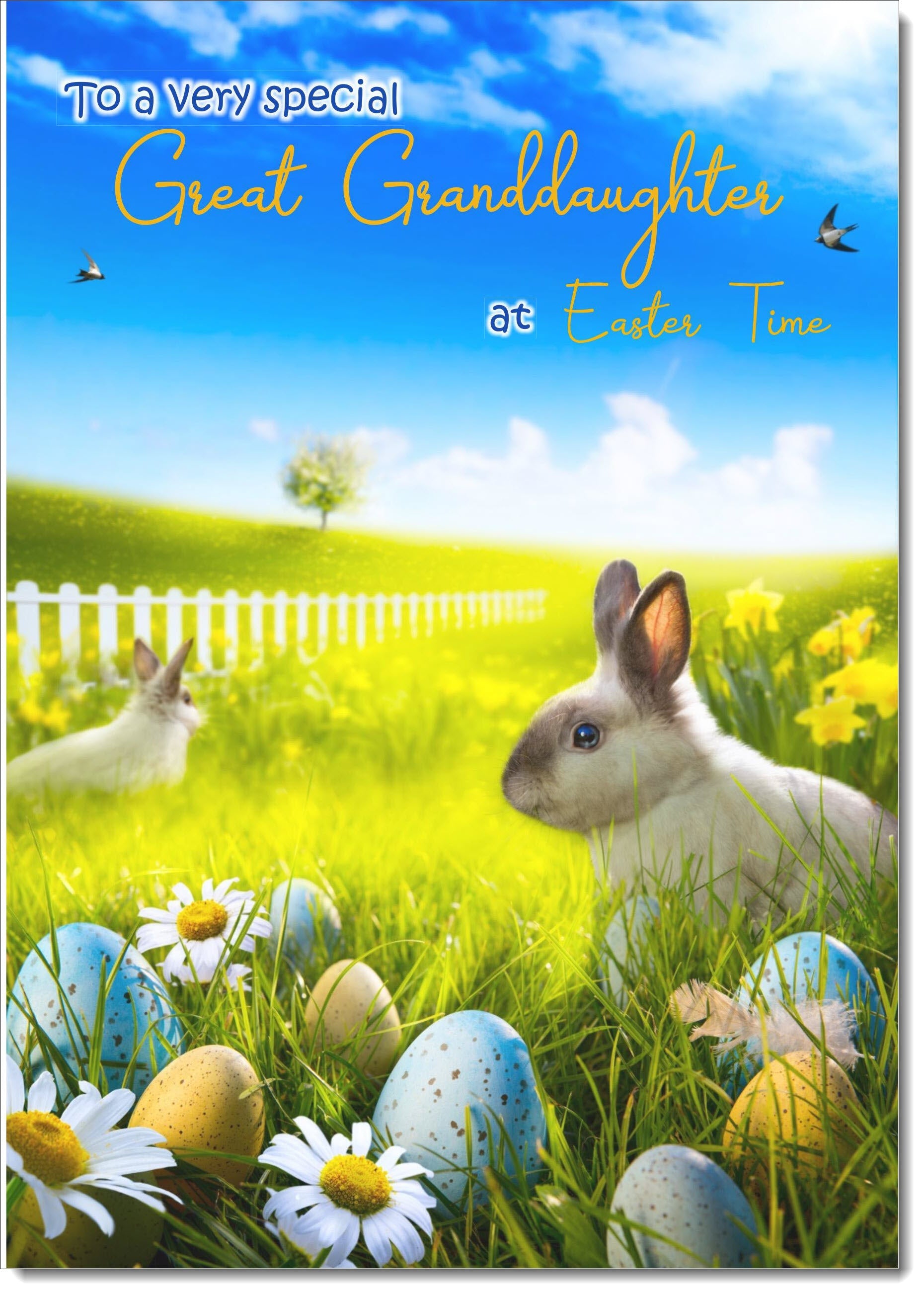 Great Granddaughter Easter Card Bunnies in Field