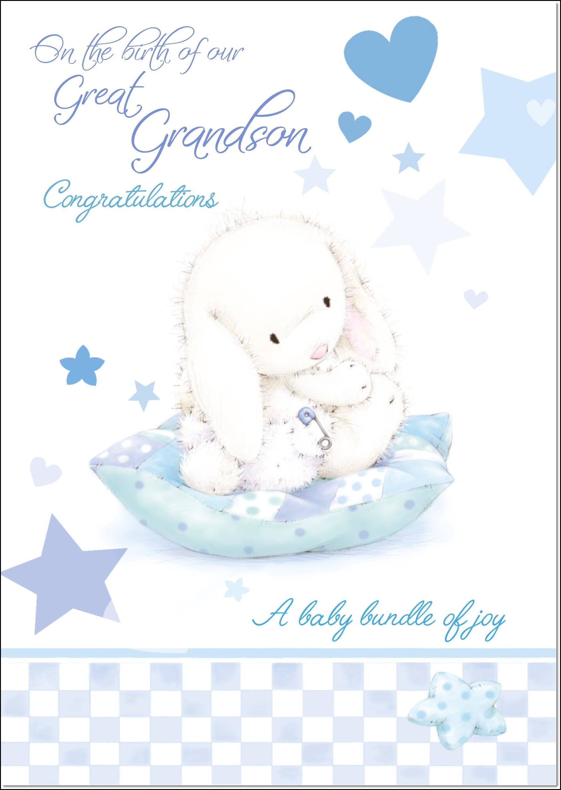 On The Birth Of Our Great Grandson New Baby Boy Congratulations Card Cute Rabbit