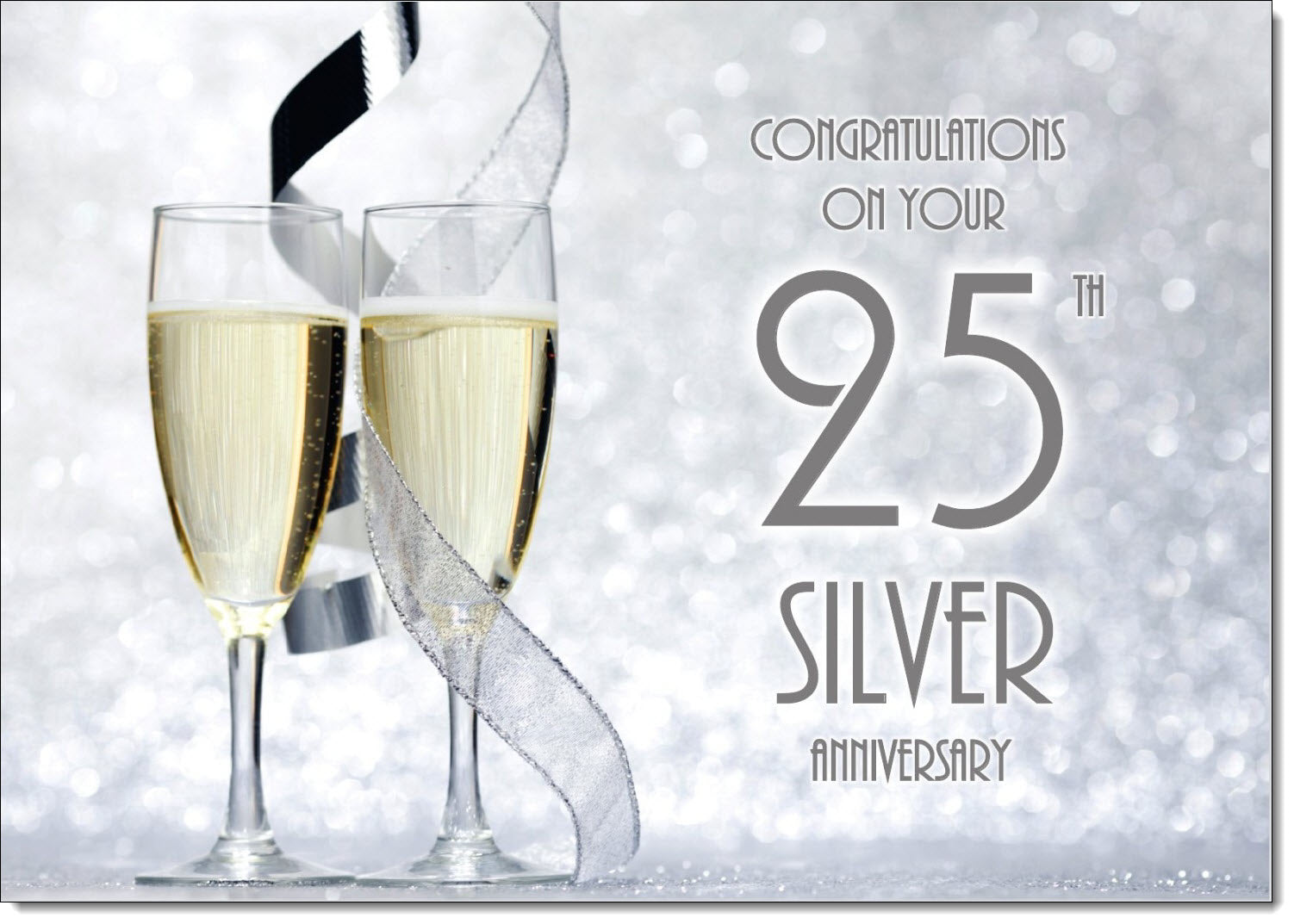 Your Silver 25th Wedding Anniversary Card Silver Champagne Glasses