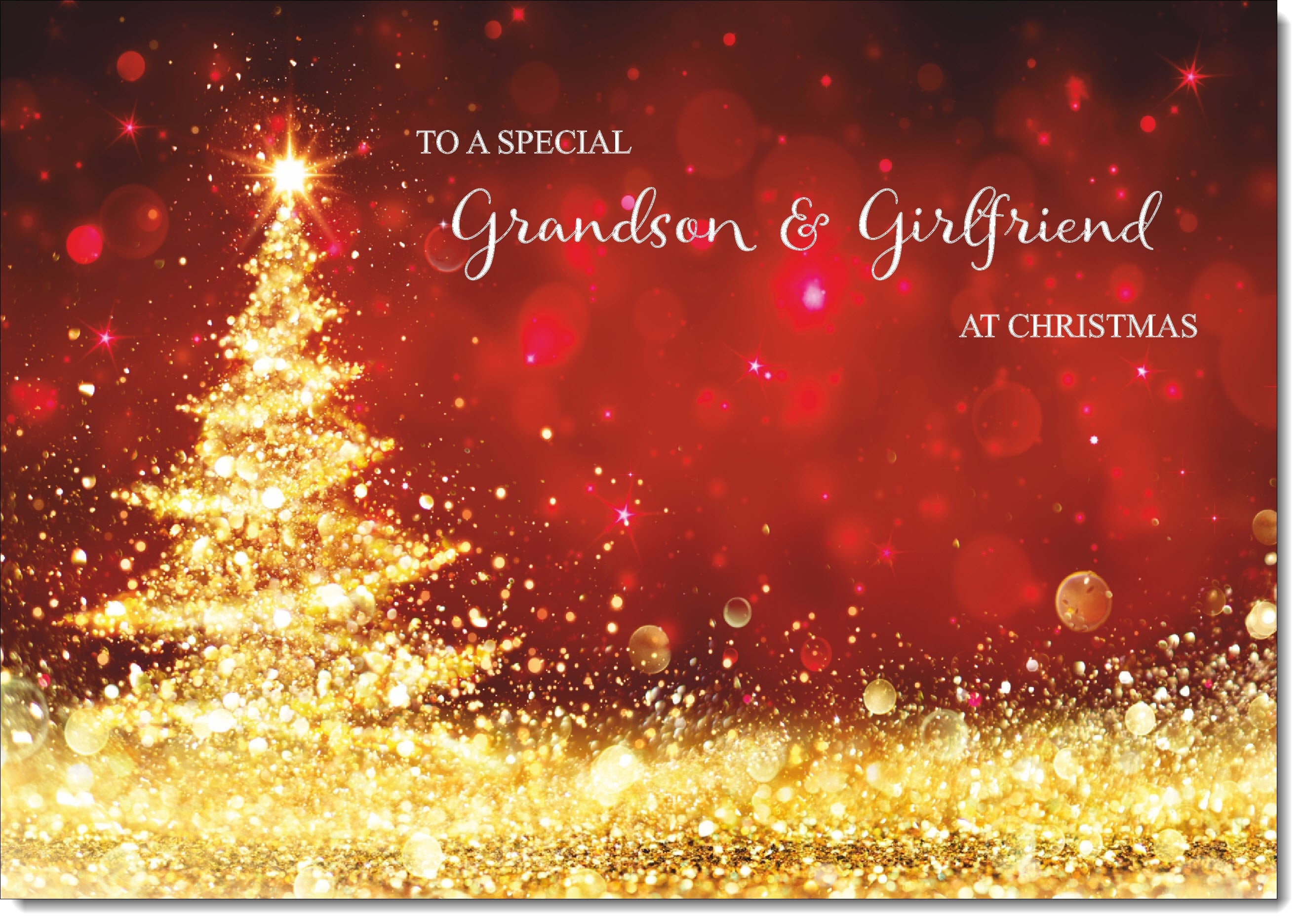 Grandson & Girlfriend Christmas Card Gold Abstract ChristmasTree