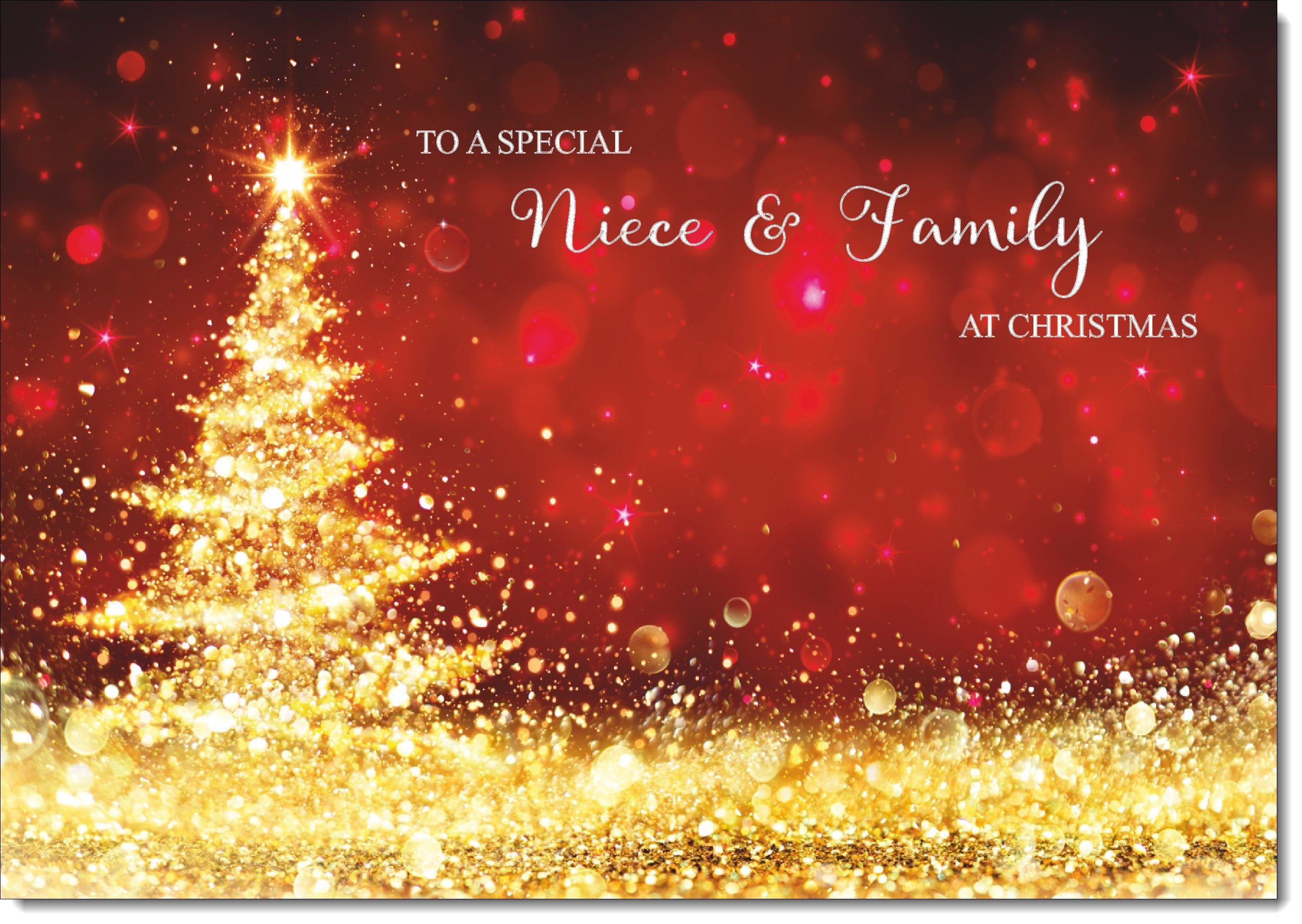 Niece & Family Christmas Card Gold Abstract ChristmasTree