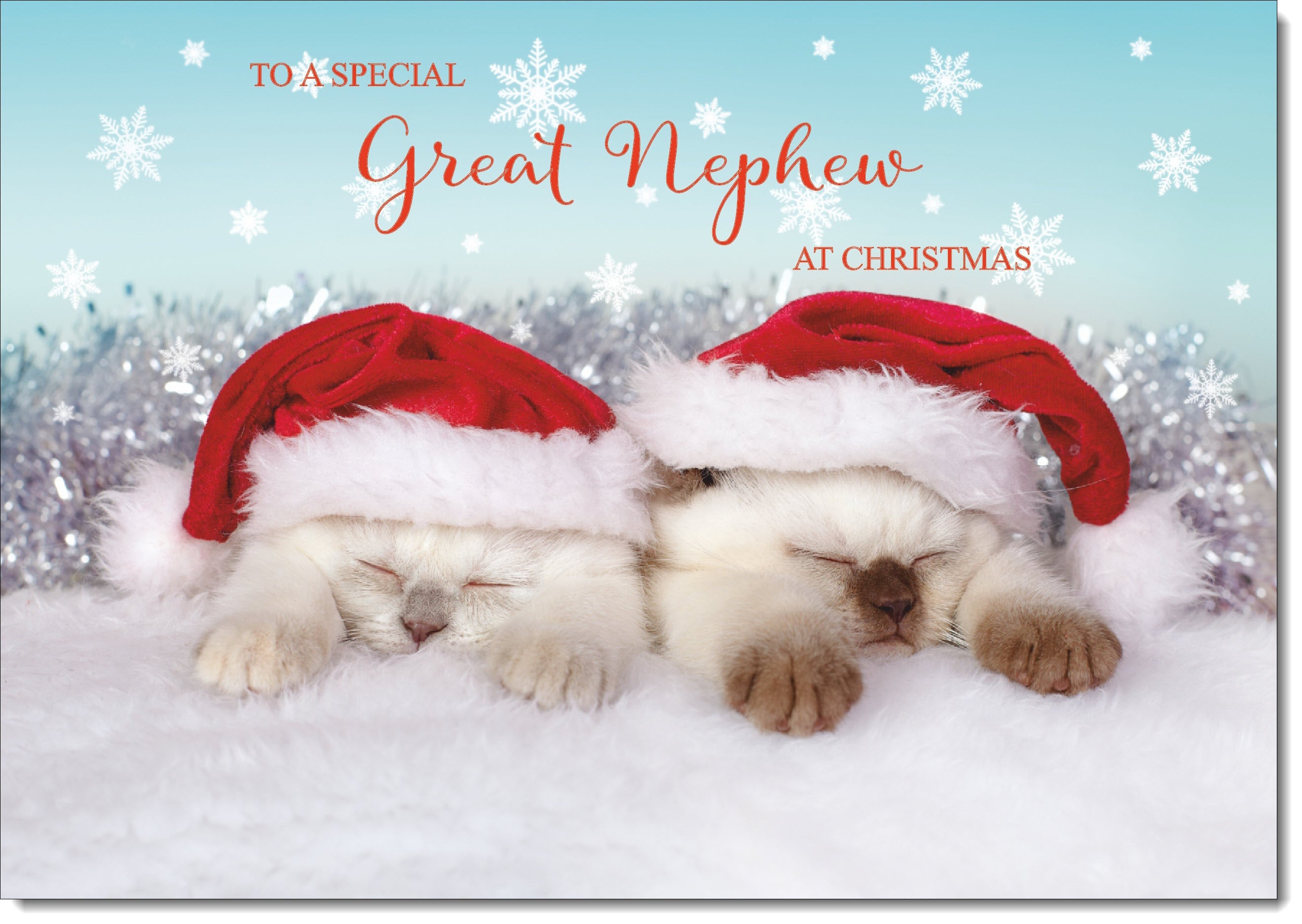 Great Nephew Christmas Card Ragdoll Kittens in Santa Hats