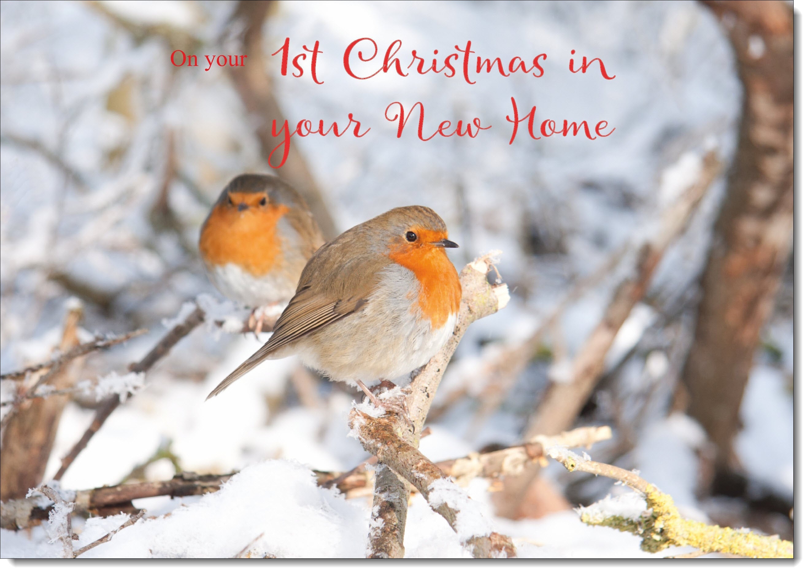 1st Christmas in New Home Card Two Robins in Tree